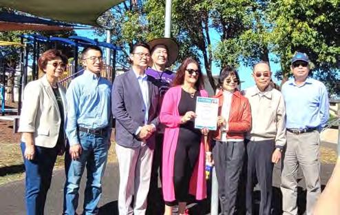 2021年市長財政午餐會上,市 議員Cr Kim Marx 邀請坐同桌,陳秋燕 委員利用時間向她提出名為「高雄公 園」,卻沒有增設運動設施,建議是 否可以增設兒童遊樂、健康設備及 BBQ設備,讓附近居民可以有一個改 善他們休閒生活品質的公園。尤其附 近其他公園都建設得很漂亮,唯獨高 雄公園好像沒有增建任何設施。