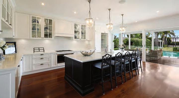 這座宅邸完美詮釋了經典海岸漢普頓風的優雅格調,是頂級濱水豪宅、宴客娛樂與生活方 式的新標竿。室內空間明亮通透,格局寬敞大器,坐擁遼闊天際線景觀。搭配人字拼木地 板、挑高天花板、訂製家具,以及標誌性的藍白配色,呈現極致精緻感。