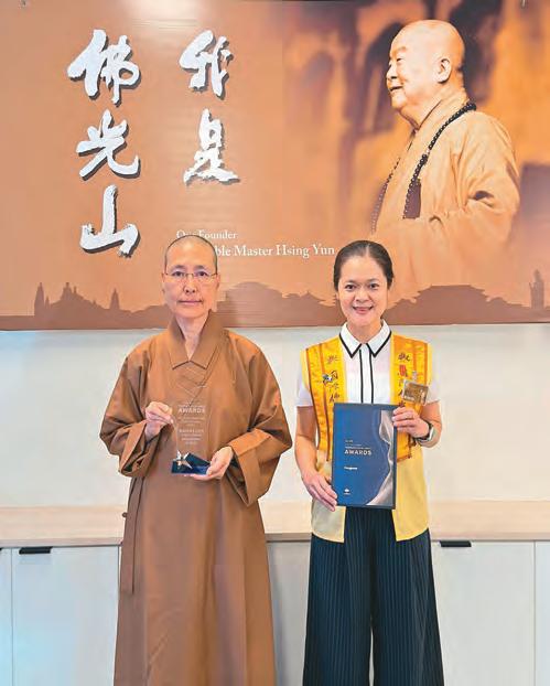 ⬆中天寺住持滿望法師和昆士蘭協會會長羅淑灃(右)以此獎, 敬獻佛光山開山祖師星雲大師。
