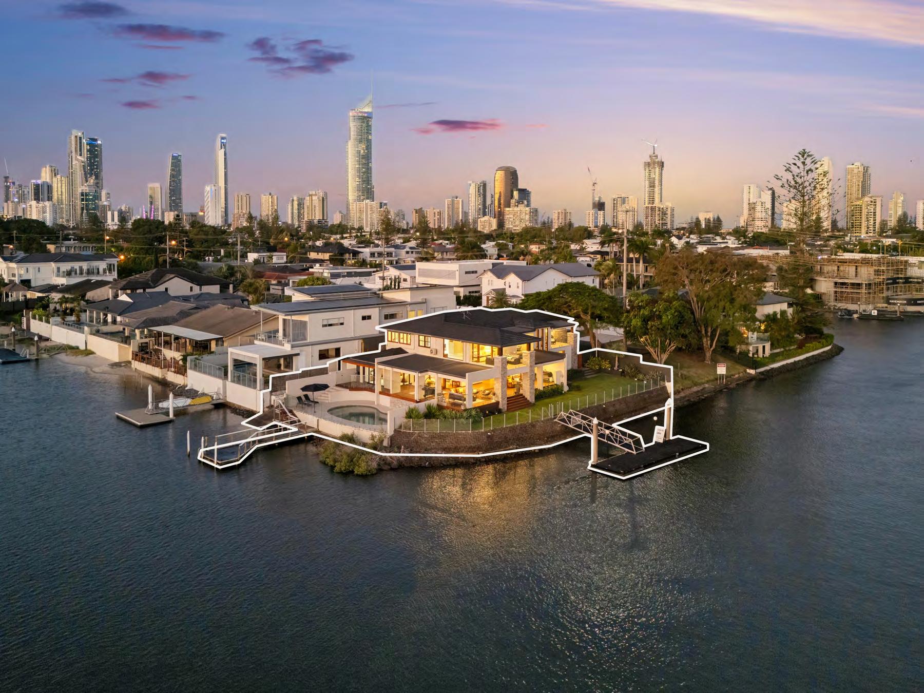坐落於尊貴的Isle of Capri,23 Etna Street坐擁約895平方米的優越轉角臨水地塊, 堪稱真正的Main River上的傳世鉅作,盡覽開闊無遮擋的壯麗水景。這座宏偉宅邸 規劃五間寬敞臥室與四間奢華衛浴,為家人與賓客提供充裕且舒適的生活空間。