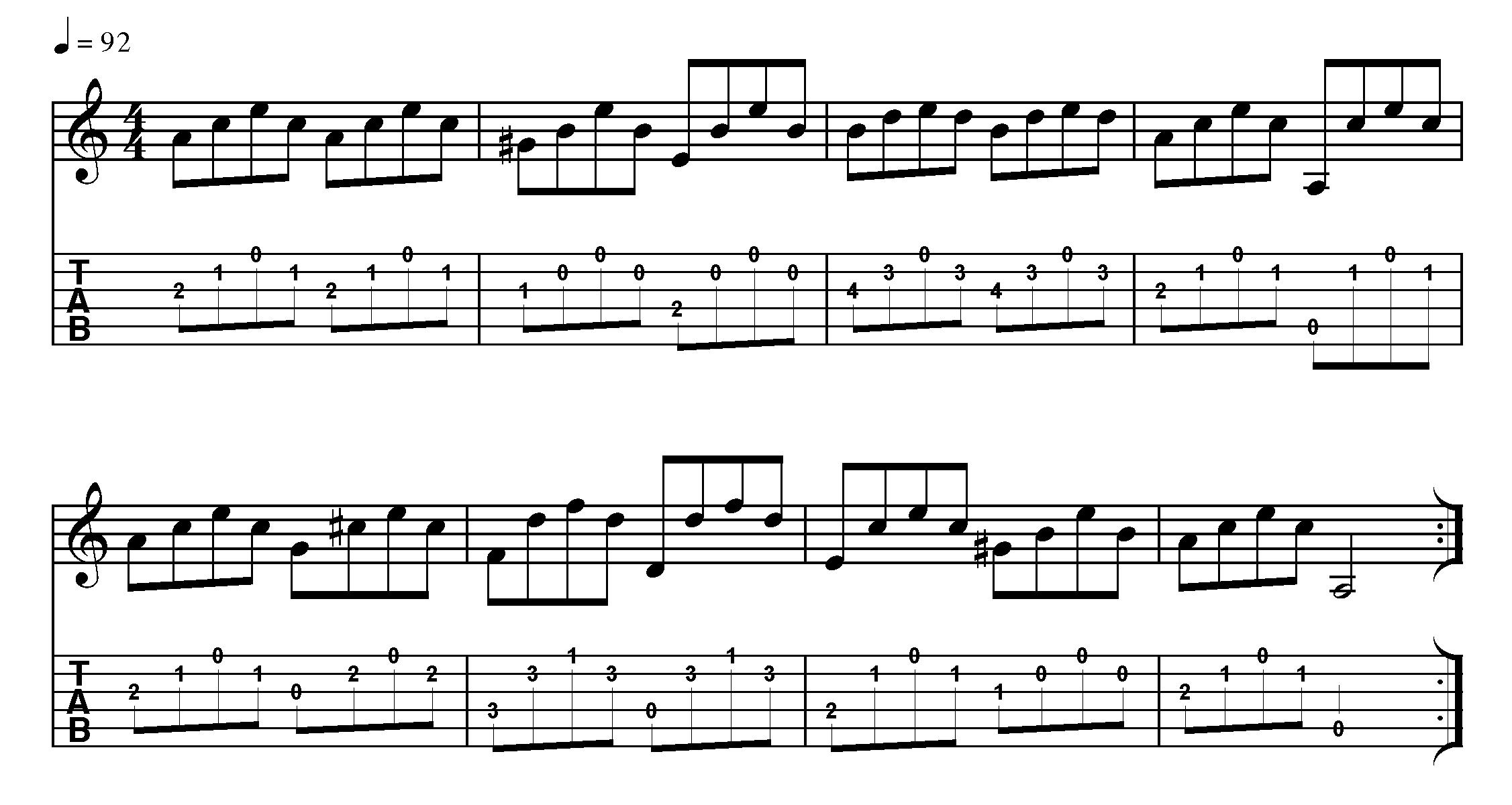 • Finger Pattern 2: Exercises 1–4 (Goal Tempo 92bpm)