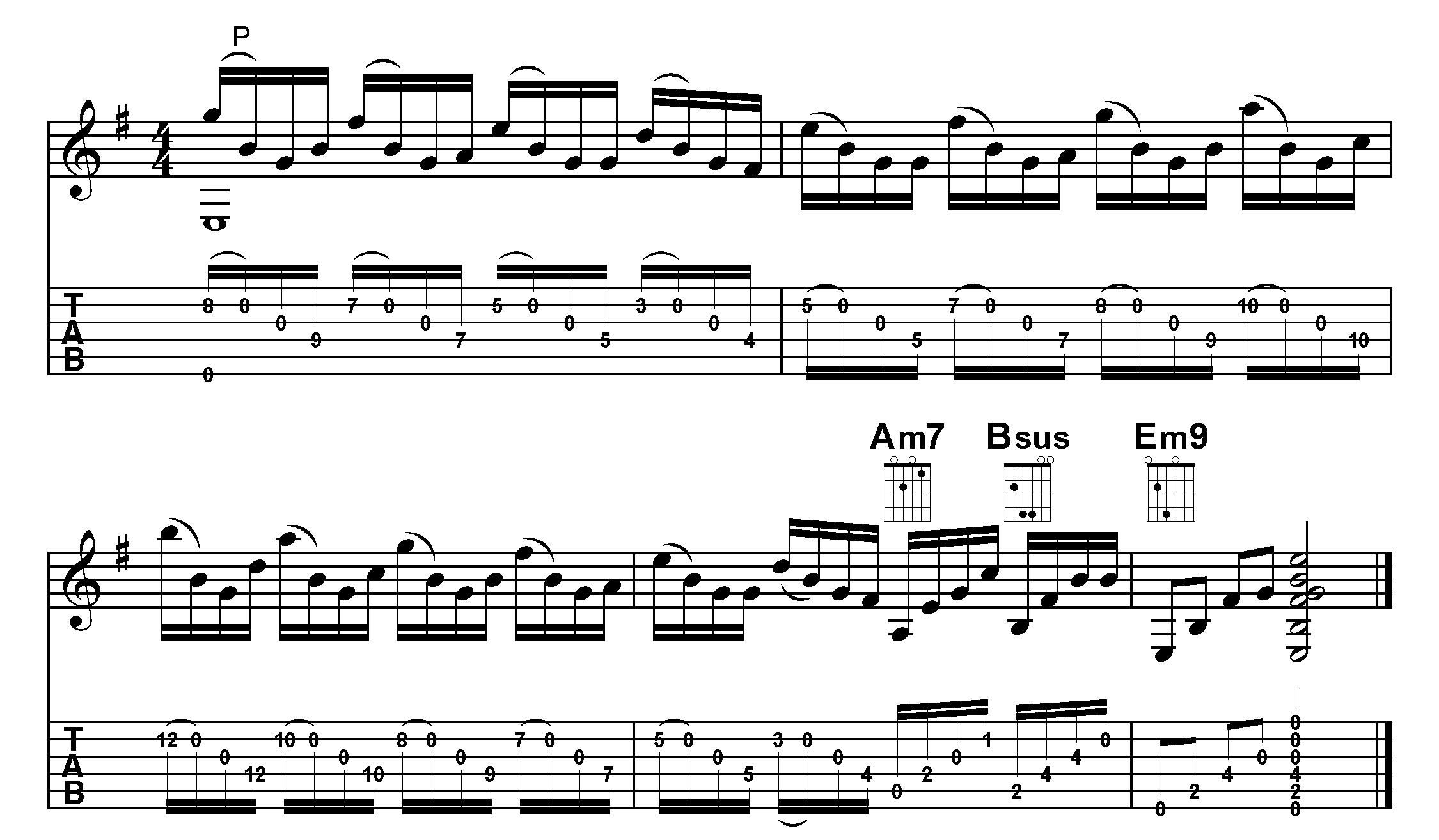 o E Major 6ths Open String Pull-offs in Sixteenths