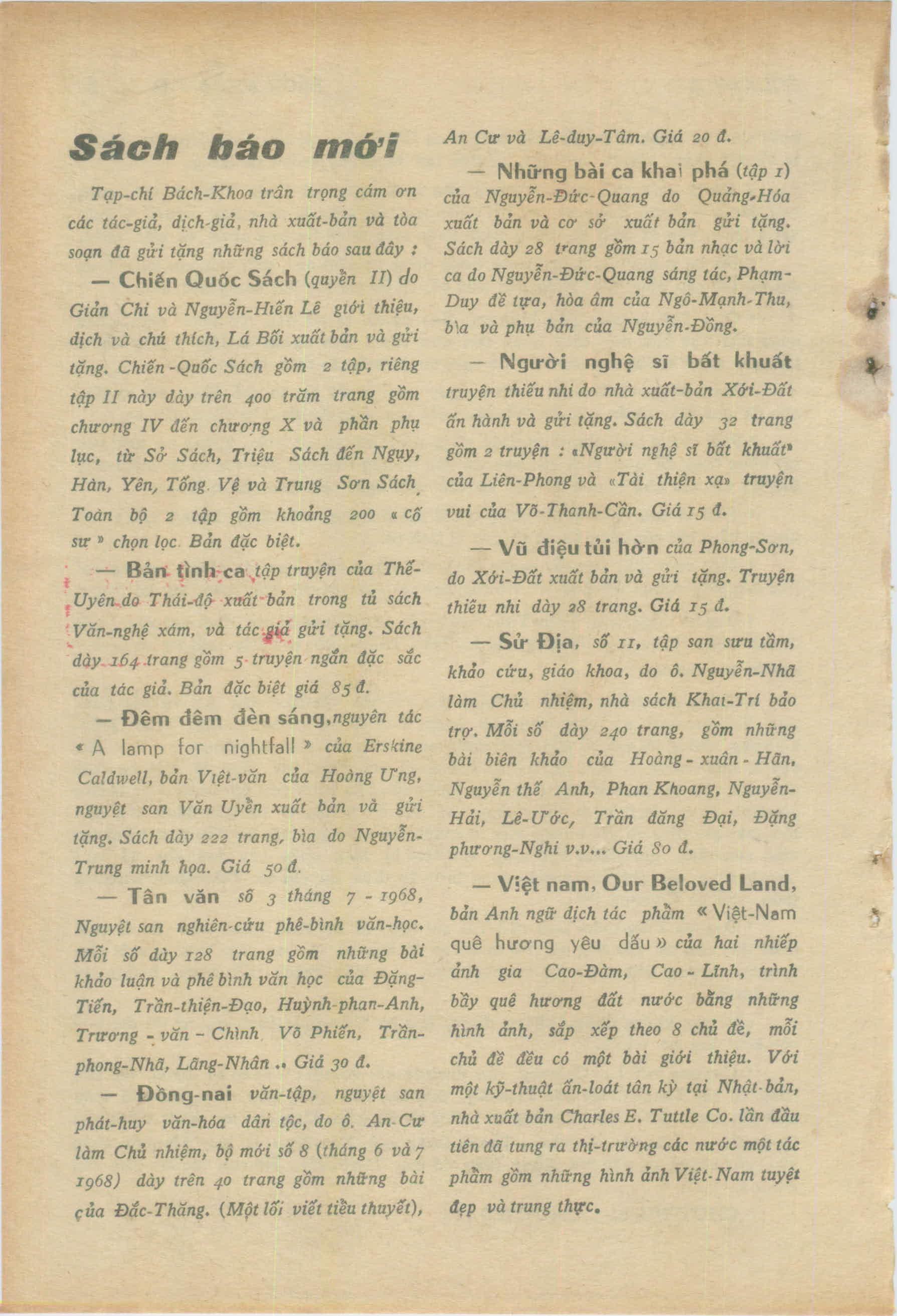 Tạp chí Bách Khoa số 278