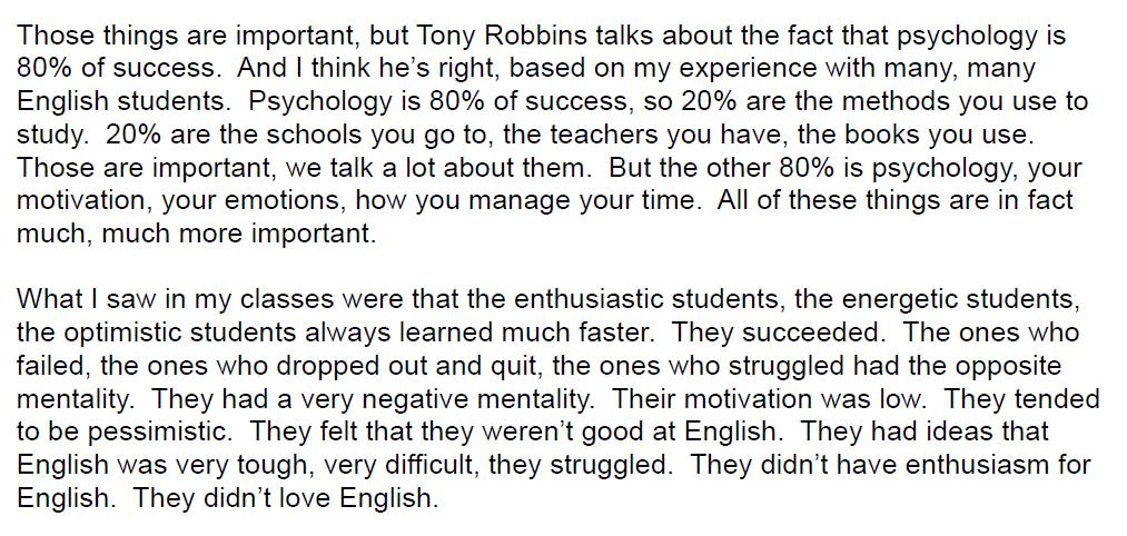 2. Phải thành công trong thời gian ngắn nhất, vì nếu để dùng được Tiếng Anh như Tiếng Việt mà mất 10 năm thì chắc cũng không ai đủ kiên trì, mặc dù các bạn biết rằng mình sẽ thành công.