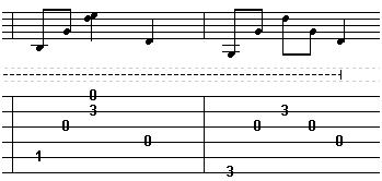 - Asimplequarternoteprogressionwithanaddedlowmelodynoteof'3'ontheAstring.