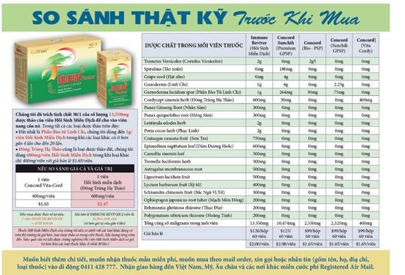 * 300mg Đông Trùng Hạ Thảo trong mỗi viên PHSL; trị giá 78.49 cents nếu so với Đông Trùng Hạ Thảo đơn độc, 600mg mỗi viên, hộp 100 viên, giá $157.00 trên thị trường.