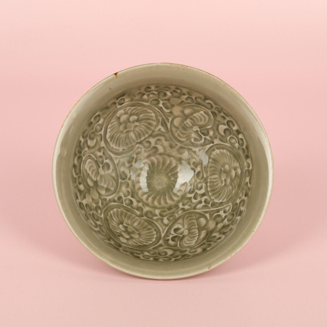 Chinese Yaozhou celadon 'chrysanthemum' moulded bowl