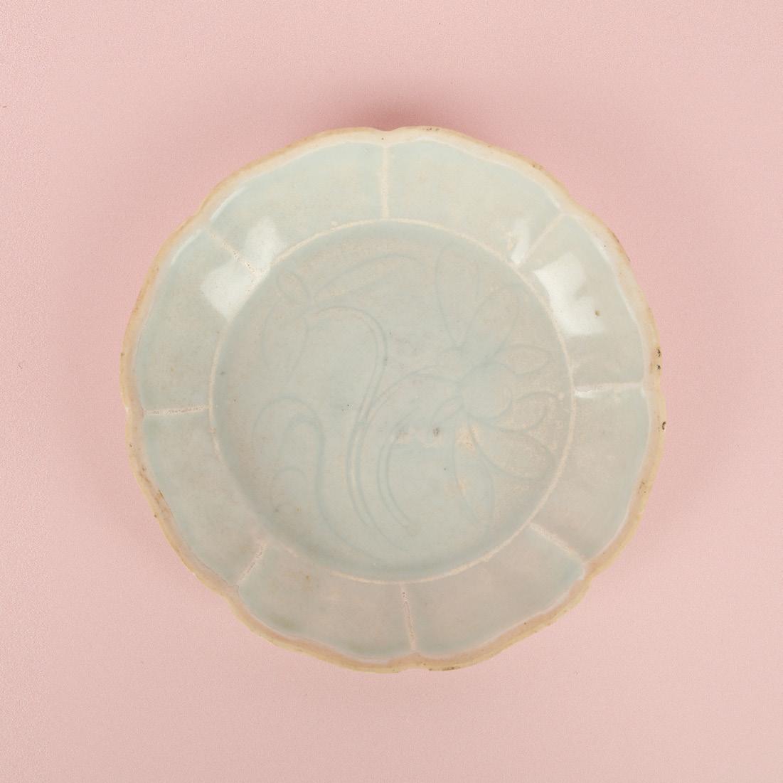 A Chinese Qingbai 'lotus' carved lobed dish 南宋 青白釉刻蓮紋葵口盌