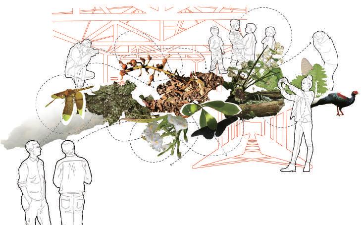 fig02: 遊客中心是探索自然的起點,而學校則是幫助與引導我們探索的場域。將兩者program相結合,能增加學習的豐富性、提高社區參與的可能性,以及讓使用者在兩 種角色的差異下體驗探索的 要性。學生能在自然環境中去探索與創新,並思考建築與環境的永續關係。遊客亦能從旁參與,豐富體驗之外也提高公共教育機會。