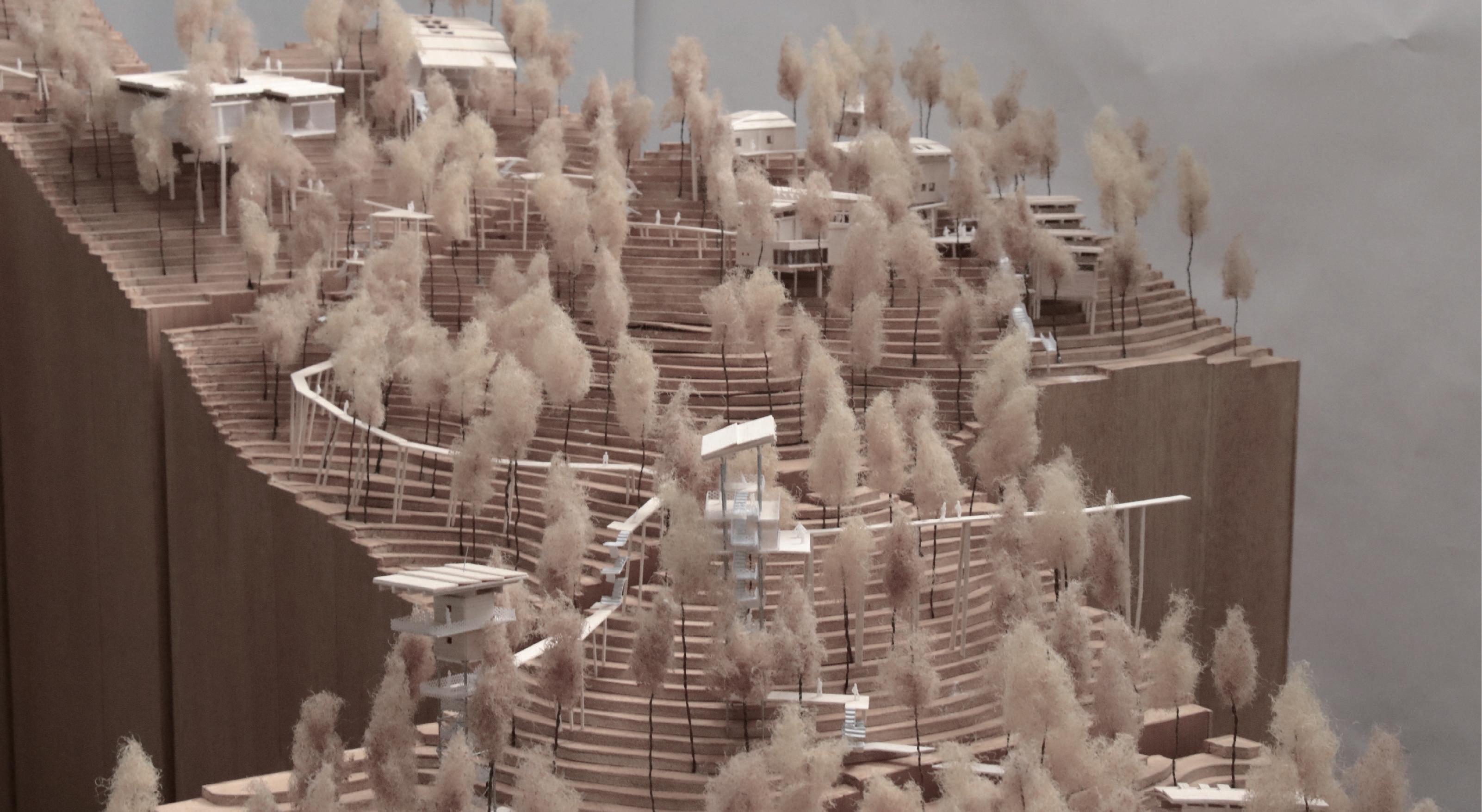 有趣的是,畢業設計的出發點本是從自身經驗出發,並純粹希望藉由山林蟲鳥來喚醒被城市囚困的好奇心及對 於探索的渴望,然而隨著對於基地更深層的挖掘與探尋,便發現山林能給的似乎不單只是都市人的壓力解藥。