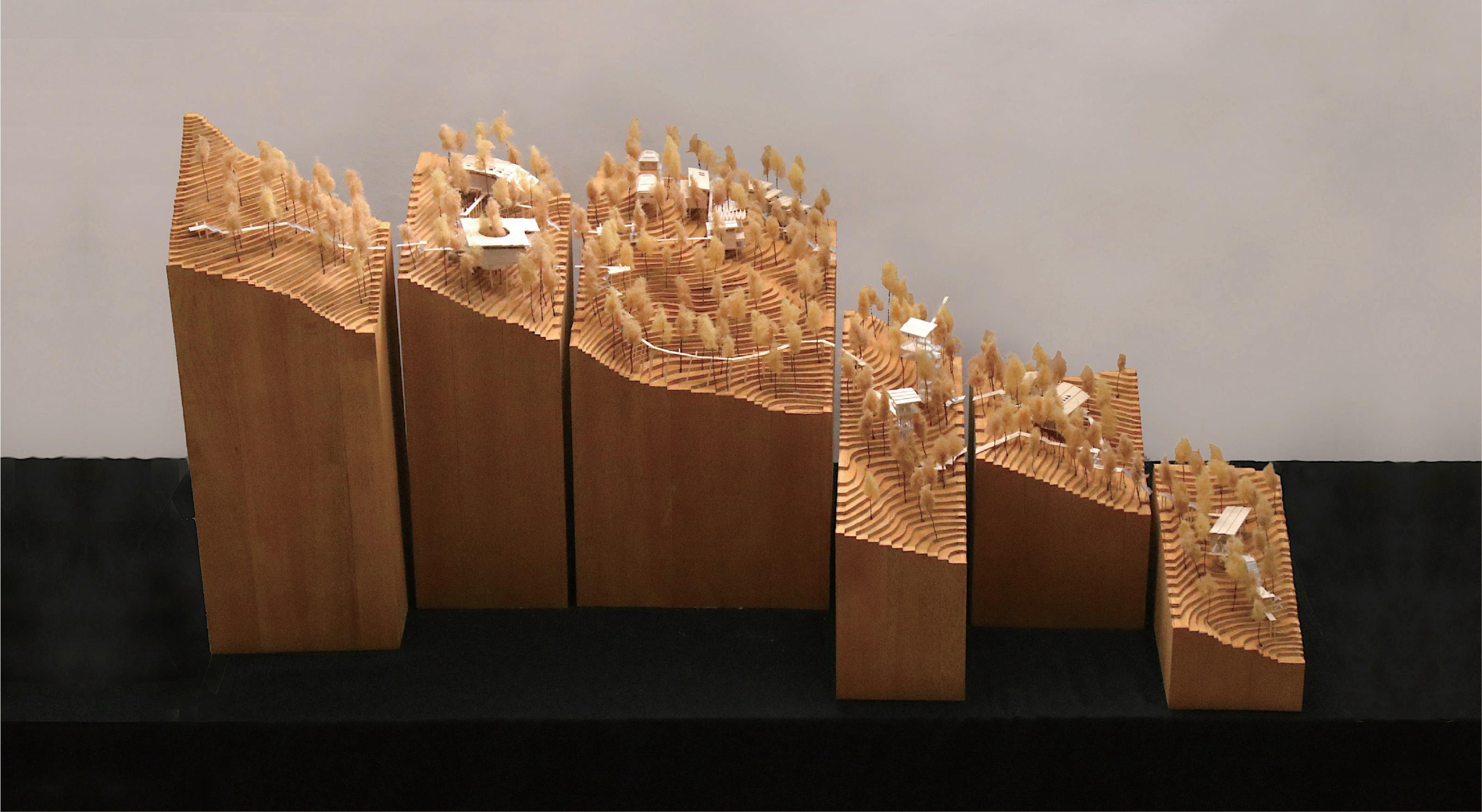 透過概念圖、空間模型,到最後1/200的完整模型,期待傳達的是建築和自然環境的融合。我將自然元素融入到建築材料和空間佈局中,創造一個與大自然共存的美麗和 靜空間。這樣的設計希望提供人們與自然連結的放鬆環境, 新喚起對大自然的尊 和珍惜,並激發內心深處的 靜和平靜感。與自然融合的建築設計,將帶給人們一 種獨特的空間體驗,讓他們 新與大自然建立深厚的情感連結,並在其中找到 靜和靈感的源泉。
