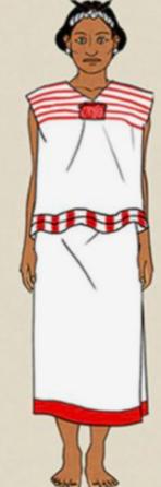 In the early stage, women’s clothing in Mesoamerica was primarily functional and practical, reflecting the needs of daily life in early civilizations such as the Olmec and early Teotihuacán societies. The most common garment was the huipil, a simple rectangular woven tunic that covered the upper body and was tied at the sides. Women paired it with a cueitl, a skirt made from cotton or agave fibers, which allowed ease of movement. Footwear was minimal, typically cactli sandals made from leather or plant fibers. Jewelry and accessories were simple, such as basic bracelets, necklaces, and ear spools, mostly worn for personal adornment rather than social or ceremonial purposes. Overall, clothing prioritized comfort and mobility, but still reflected local weaving techniques, materials, and the cultural identity of the community.