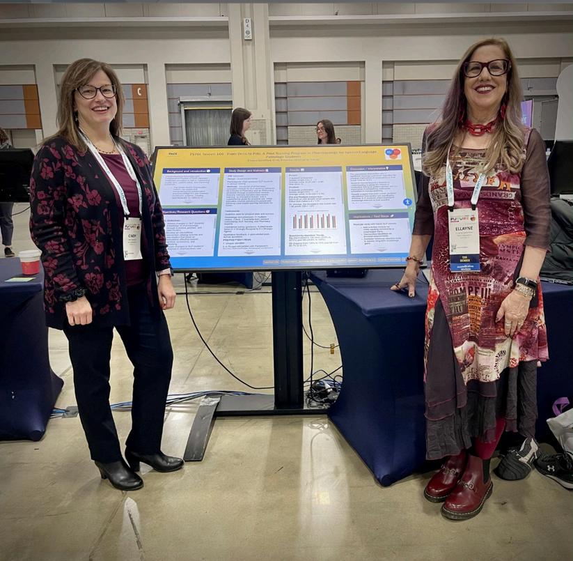 Pace University’s College of Health Professions was proudly represented at the American Speech-Language-Hearing Association (ASHA) Convention, where faculty members showcased a successful interprofessional poster presentation The project, presented in collaboration with CHP colleague’s Ellayne Ganzfried MS, CCC-SLP, FASHA, FNAP and Cindy Paradiso PhD, RN-BC, CNE, highlighted the strength of Pace’s interdisciplinary approach to health education and research.