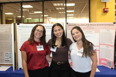 Alyssa Cabral, Sofia Ciani, and Giana Bello, Health Science, BS, showcased their research at the Honors Theses Poster Day in the spring, sharing the results of months of focused study Their projects reflected strong academic curiosity, clear communication skills, and a commitment to exploring topics in depth.