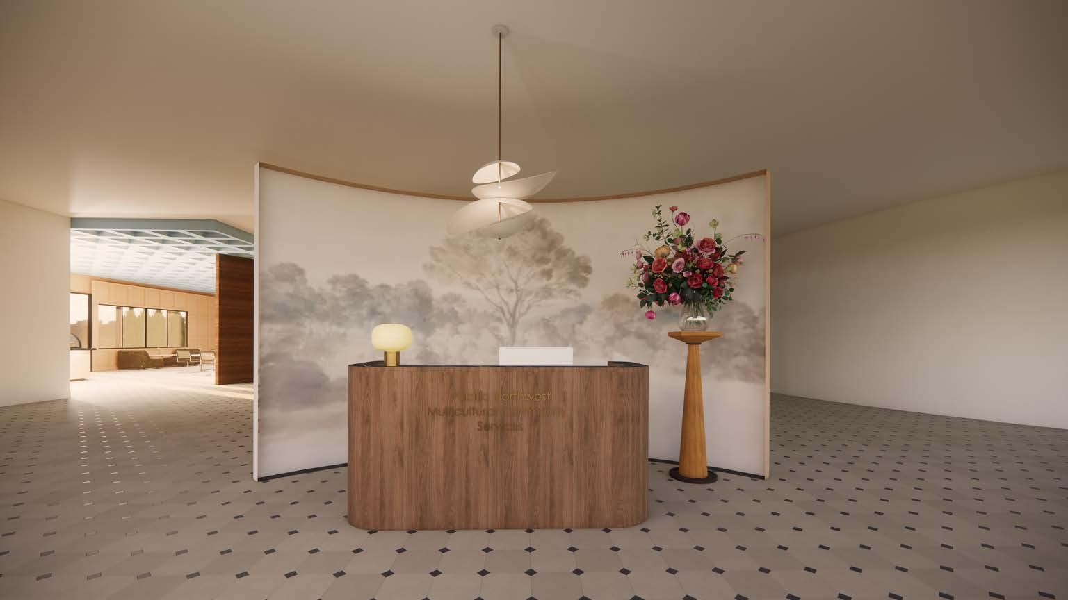 This community center is designed as a “Rooted Welcome”—a place of warmth, grounding, and connection for refugees and displaced families beginning new lives in Portland. The design responds to the city’s gray climate and nature-centered ethos with an aesthetic that is emotionally uplifting, textural, and handmade. Drawing from mid-century modern bohemian influences, the space embraces natural materials, layered textiles, and lush greenery to create comfort and belongingacrosscultures.