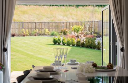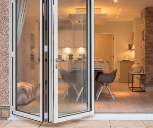 Origin's bespoke bi-fold door was chosen to help bring light and space to this home and to enhance open-plan living in the property. A real statement item, the Origin bi-fold door o ers huge appeal to prospective house buyers. Modern, sleek and stylish, the doors glide to create a seamless space between the inside and outside, whilst o ering the highest levels of thermal e ciency and security - ideal for the modern house market.