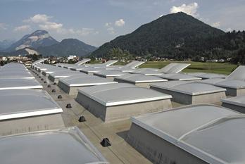 The two shipping containers were combined to form a 20 x 30ft room, topped with a Sika green roof, which