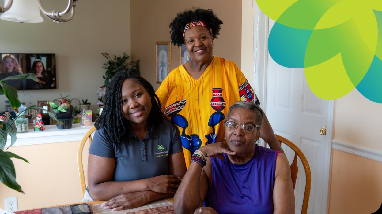 Pictured: Briana Nkwenti, a community health worker with ChristianaCare, meets with Sonja McRant (center) and Robin McRant at their home in Kent County, Delaware.