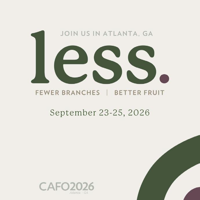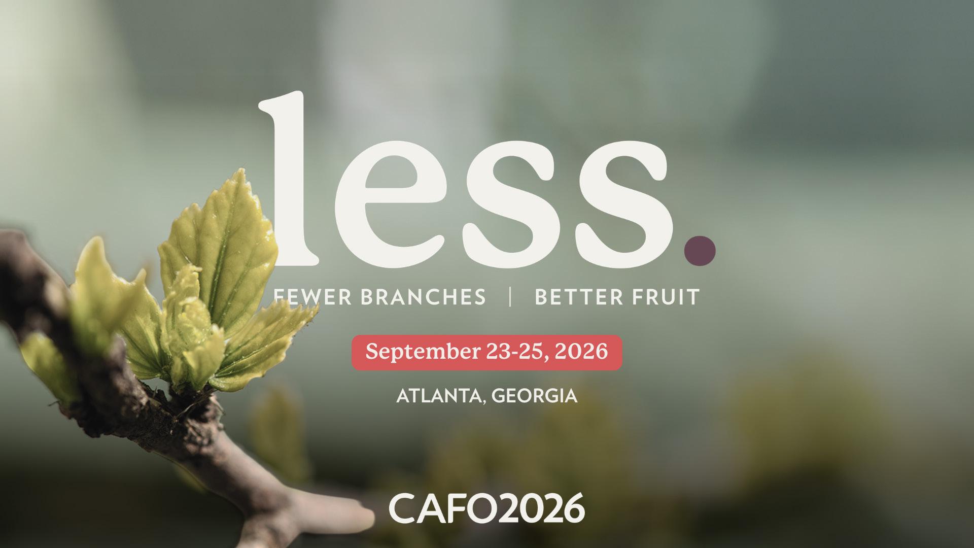 • What if doing less could bear more fruit? Join us at CAFO2026 as we pursue fewer branches, better fruit together. September 23–25 in Atlanta. CAFO2026.org #CAFO2026 #Less