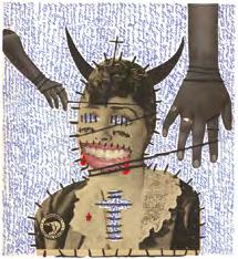 C’est plutôt quelque chose d’intuitif. Dans n’importe quelle société, il y a des choses qui nous déplaisent. Par exemple, si j’ai une photo devant moi d’un personnage X, il peut être connoté ou non socialement. Eh bien, je me laisse aller. Quelque chose me pousse à révéler ce qu’il y a de sombre ou ce qu’il pourrait y avoir de caché derrière les apparences. À pointer une contradiction dans l’image. Je veux montrer ce qu’il y a de malsain chez l’humain. Oui, le négatif. Et alors, ça sort, tu vois. Je commence à le « déshabiller », à creuser ce qu’il y a derrière. J’y vais. Quelque chose me pousse à démasquer les choses.