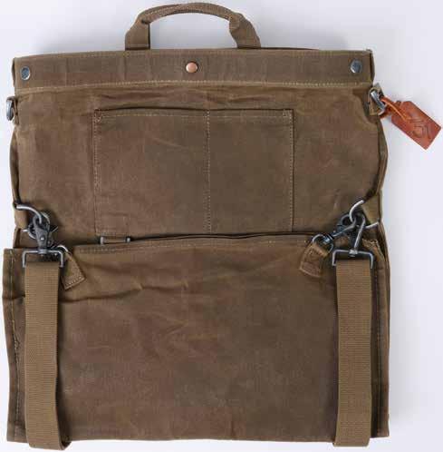 17" L x 16" W x 3" H Made from 100% waxed canvas. Spot clean only.