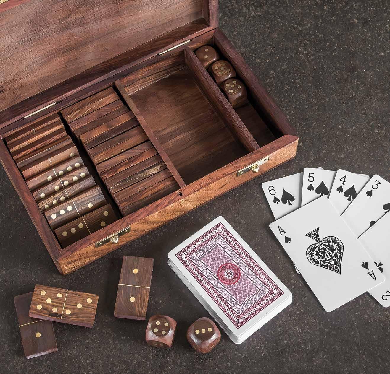Discover the trifecta of gaming with Deal, Place & Roll—where cards, dominoes and dice converge to create an unbeatable game night experience. Embrace the blend of strategy and chance with this standout set, ensuring hours of friendly competition.