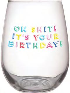 stemless glass party time 10 oz. 4" x 5" h. hand wash each $11 min 6 R1695