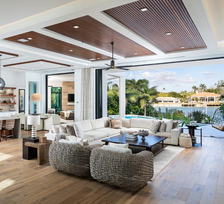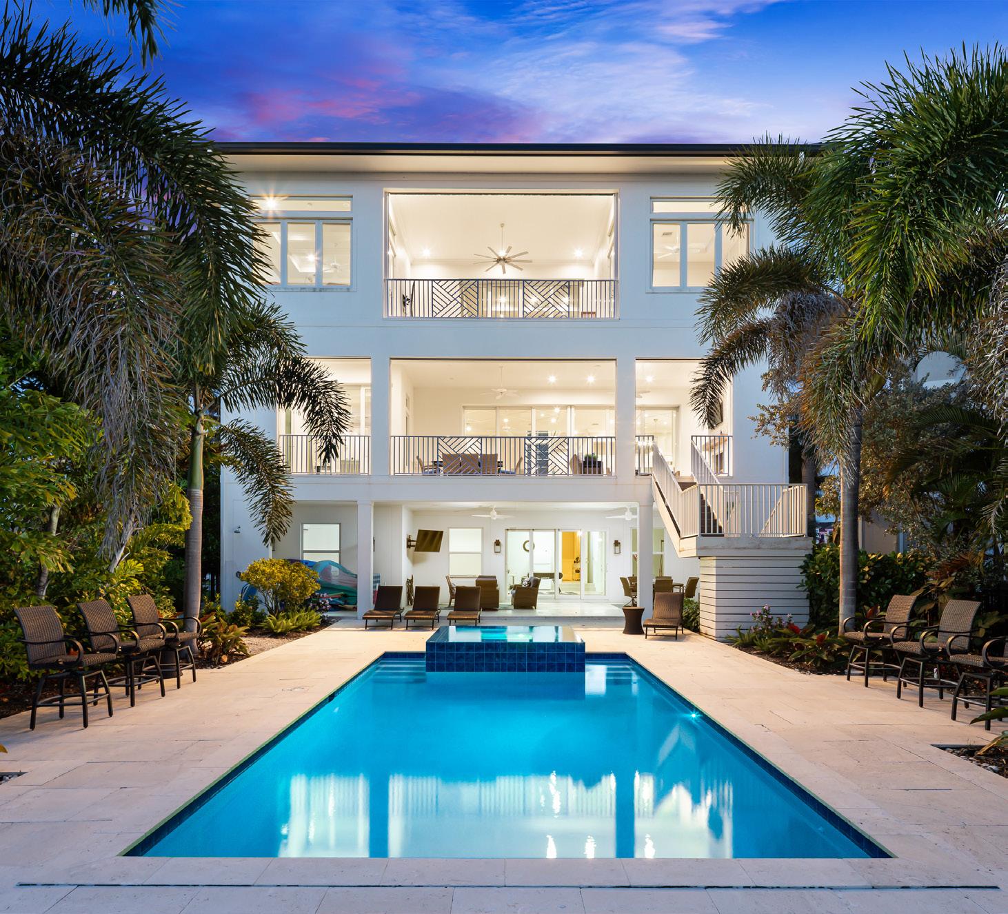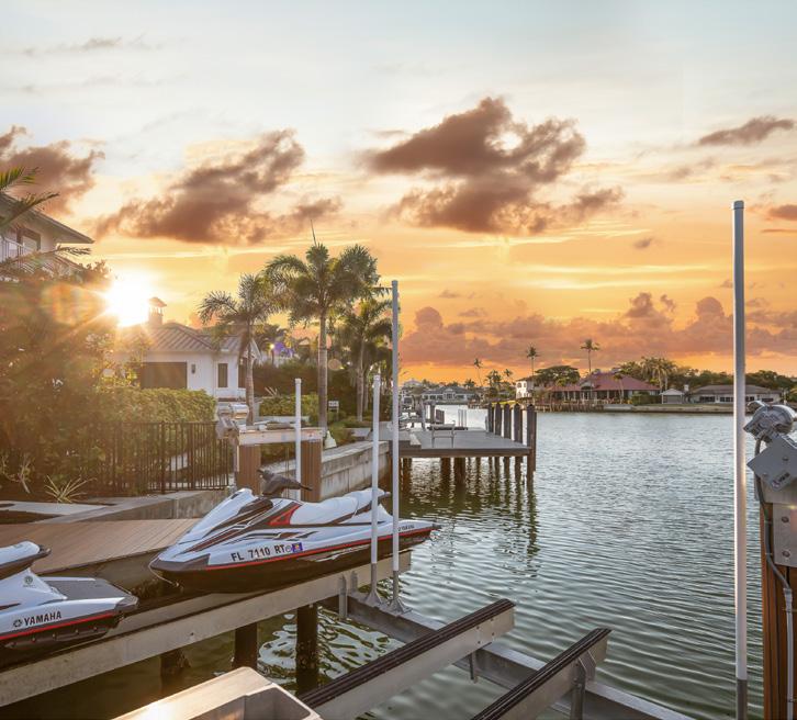 This stunning bayfront masterpiece in the coveted Carolands neighborhood on Bonita Beach looks features beautiful bay views, western exposure, and spectacular sunsets. The coastal contemporary retreat extends to 5,015 sq ft (466 sq m) “under air” with refined interiors, seamless indoor-outdoor spaces, including a resort-style pool and spa, a private dock with dual lifts, convenient Gulf access, and a short walk to the beach.