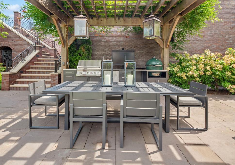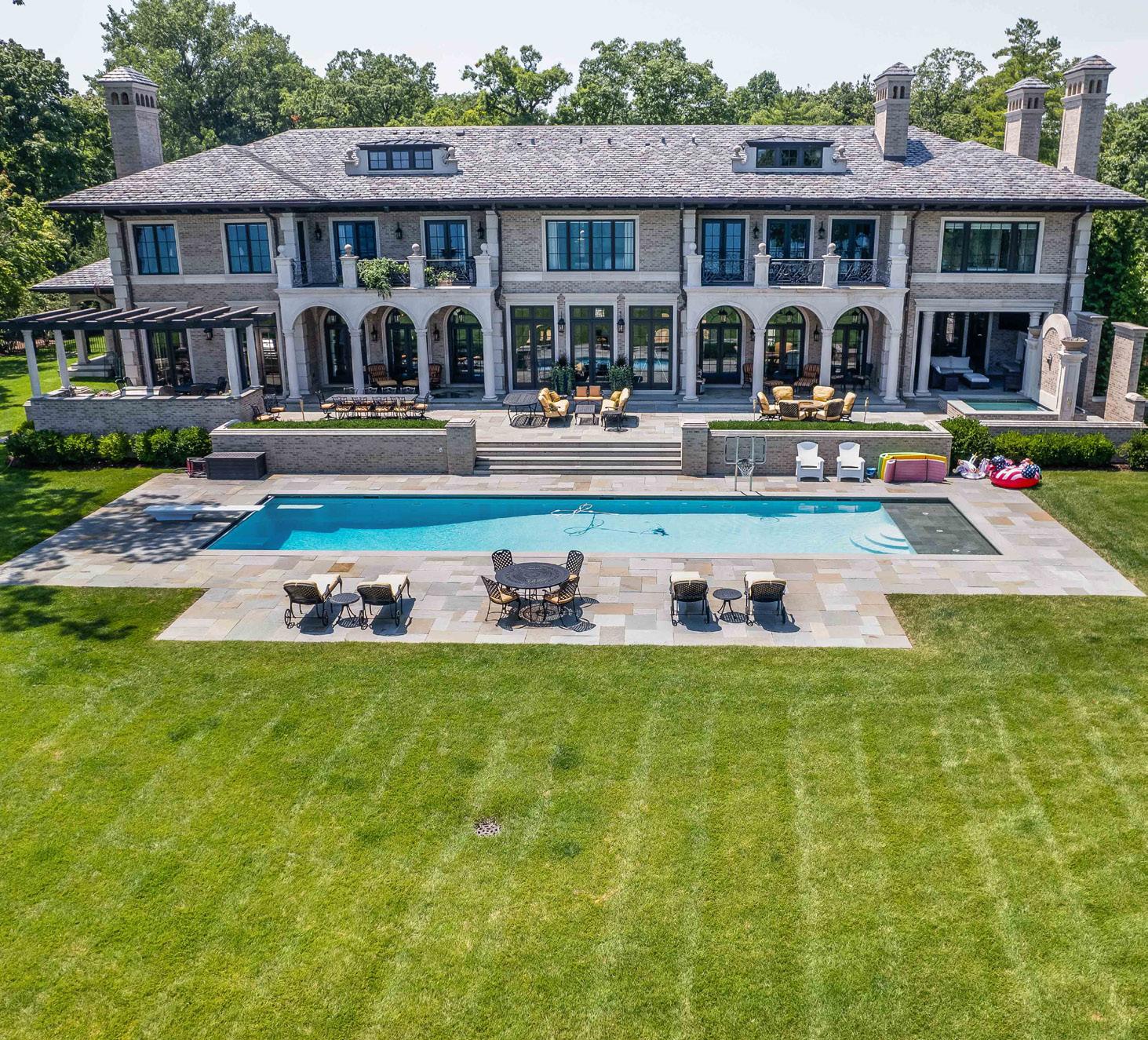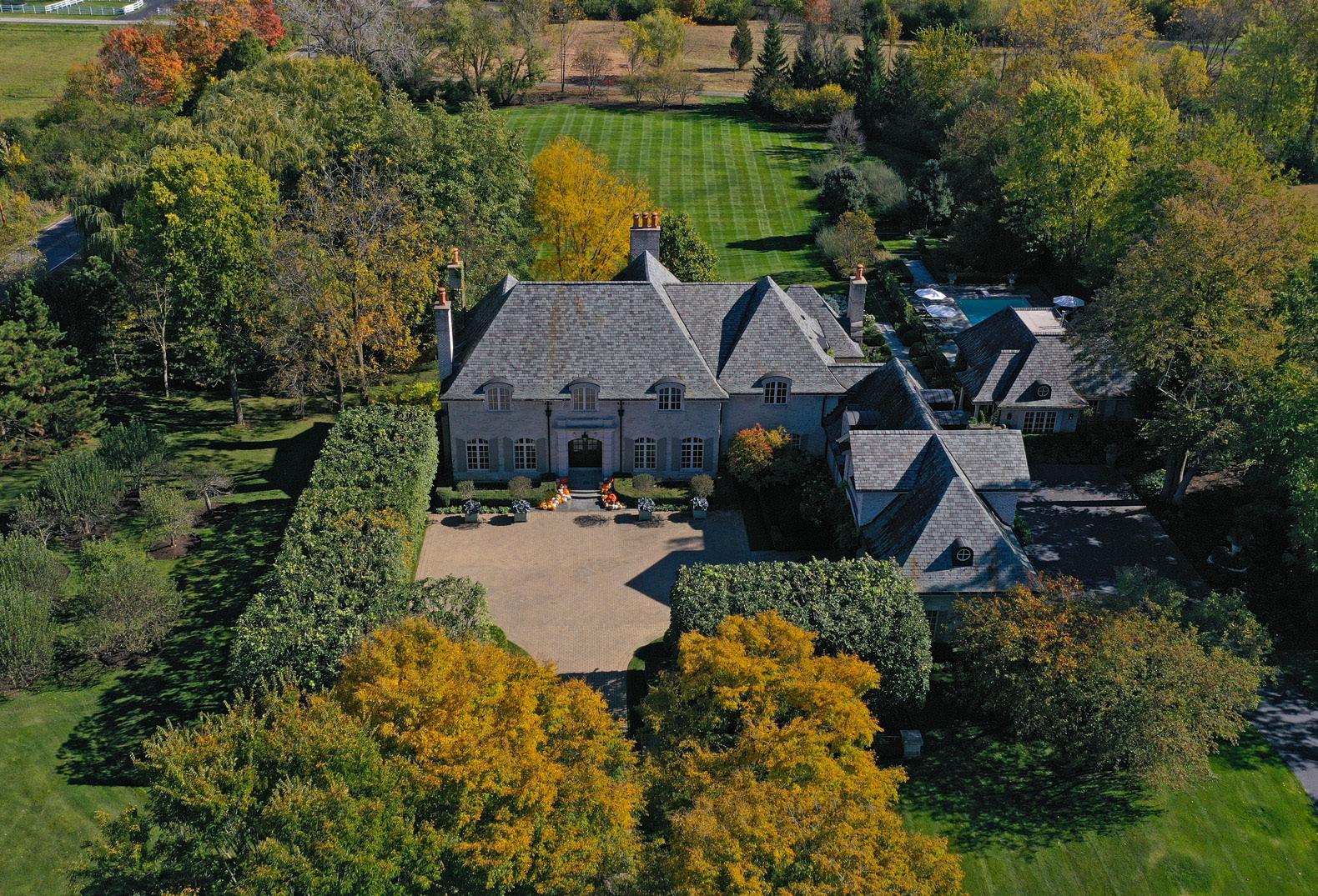 Built in 2007, this French Normandy–inspired stone estate sits 35 miles (56 km) west of Chicago on 3.64 acres (1.47 ha), with an option for 4 additional acres (1.62 ha). Offering 9,500+ sq ft (883 sq m) plus a pool house, it features a Vermont slate roof, copper lanterns, limestone and bluestone. The primary suite boasts soaring ceilings, exposed beams, a marble fireplace, and parklike views. Offered at $4,950,000