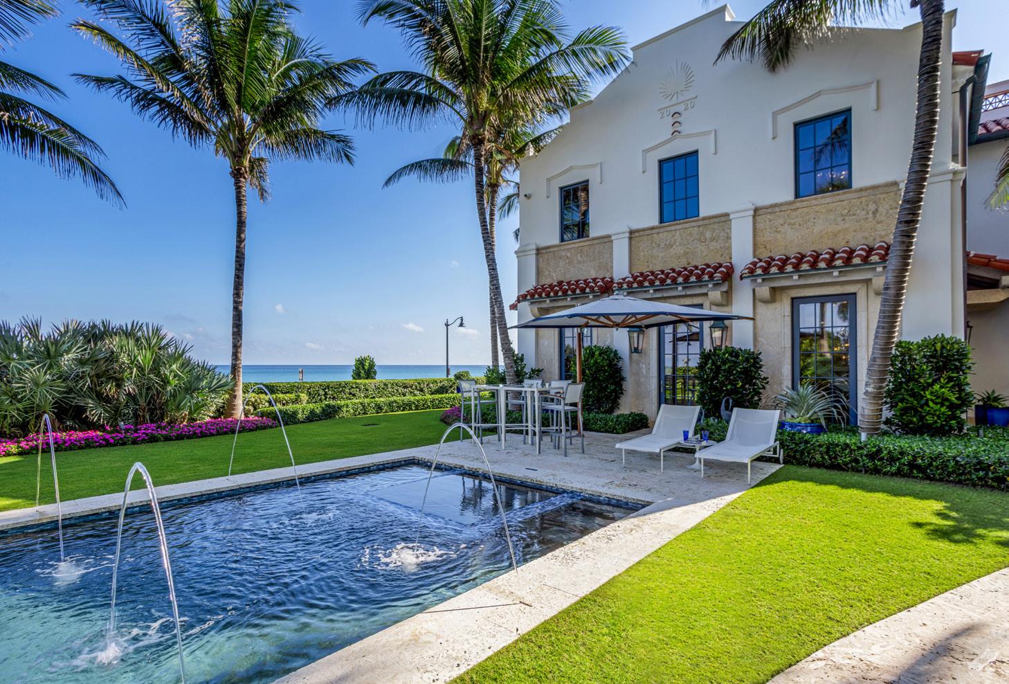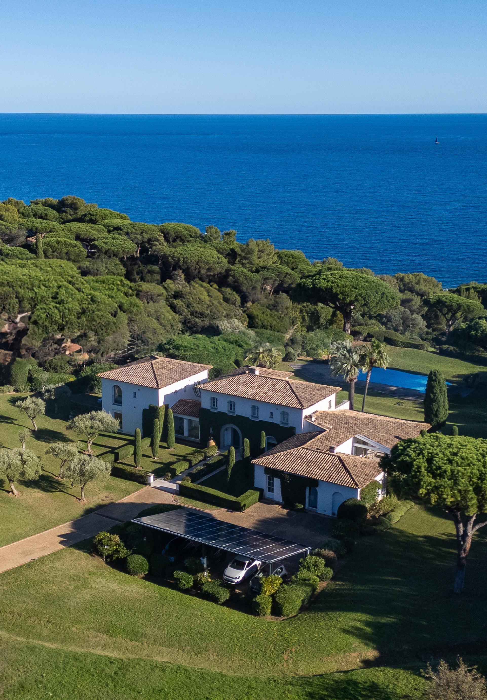 This elegant Palladian-style villa offers 4,305 sq ft (400 sq m) of bright living space with sea views. The reception rooms and the kitchen open to a terrace, while five en suite bedrooms enjoy private outdoor access. A studio, office, event space, and spacious garage are housed within the basement. Surrounding the home are 0.56 acres (0.23 ha) of landscaped grounds with a heated pool and premium amenities. Offered at €9,500,000