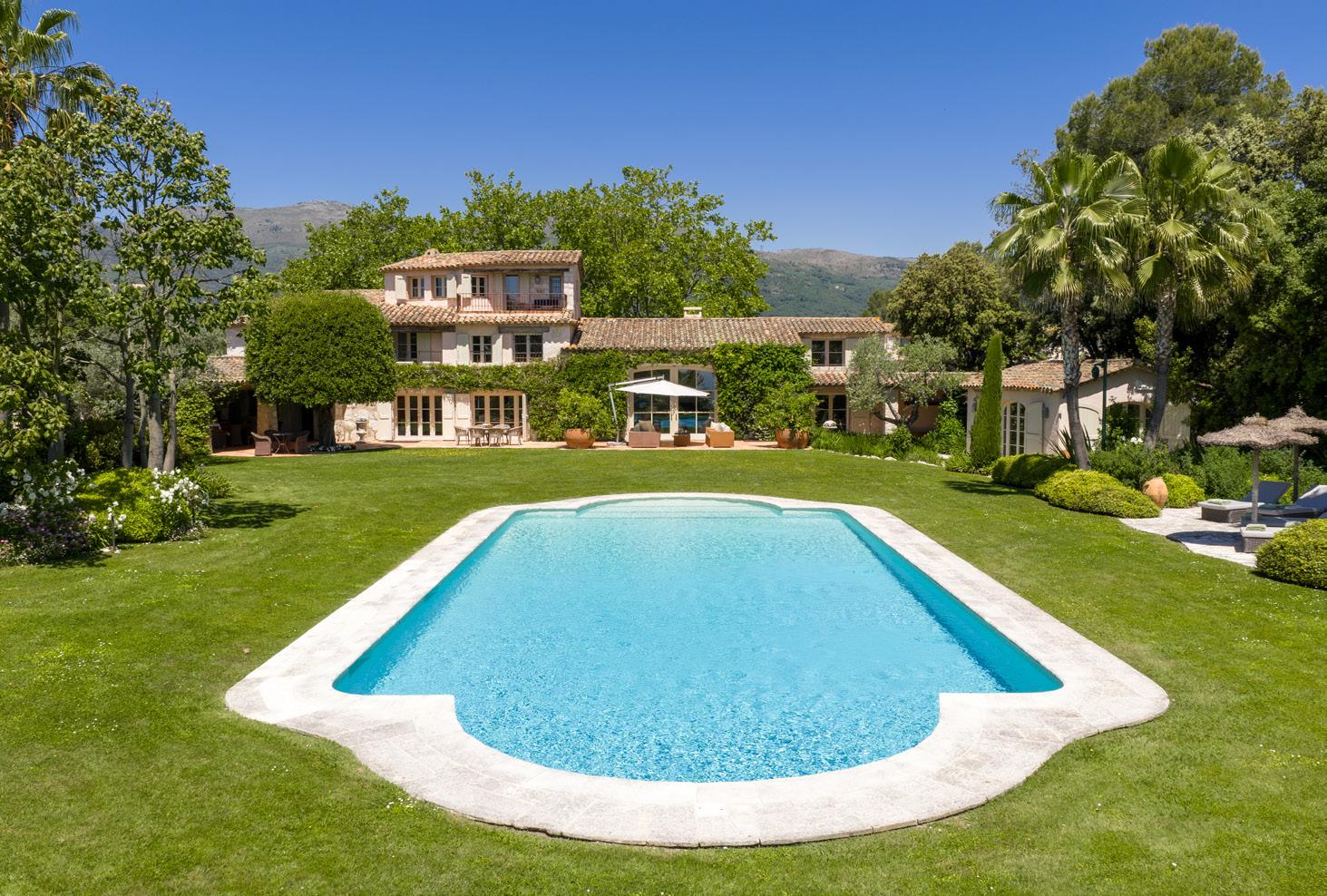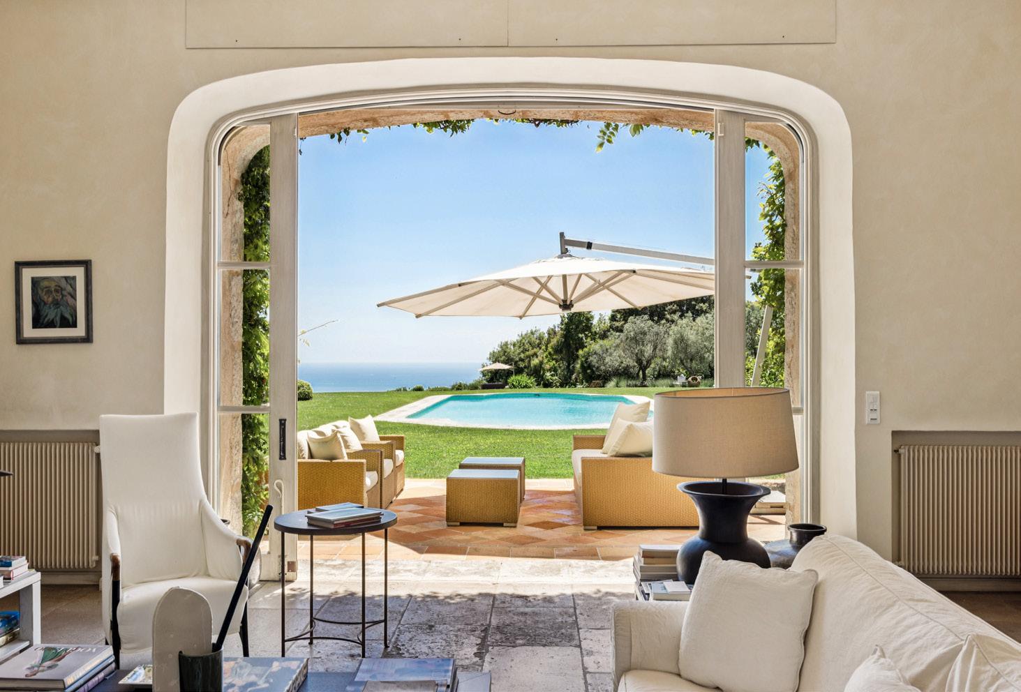 Set within one of the region’s most exclusive private estates, this exceptional bastide by architect Giselbach sits on 3.2 landscaped acres (1.3 ha) with panoramic views of the sea, the countryside, and the village of Saint-Paul de Vence.. The main house, guest house, and caretaker’s apartment offer a combined 7,858 sq ft (730 sq m) of accommodations.