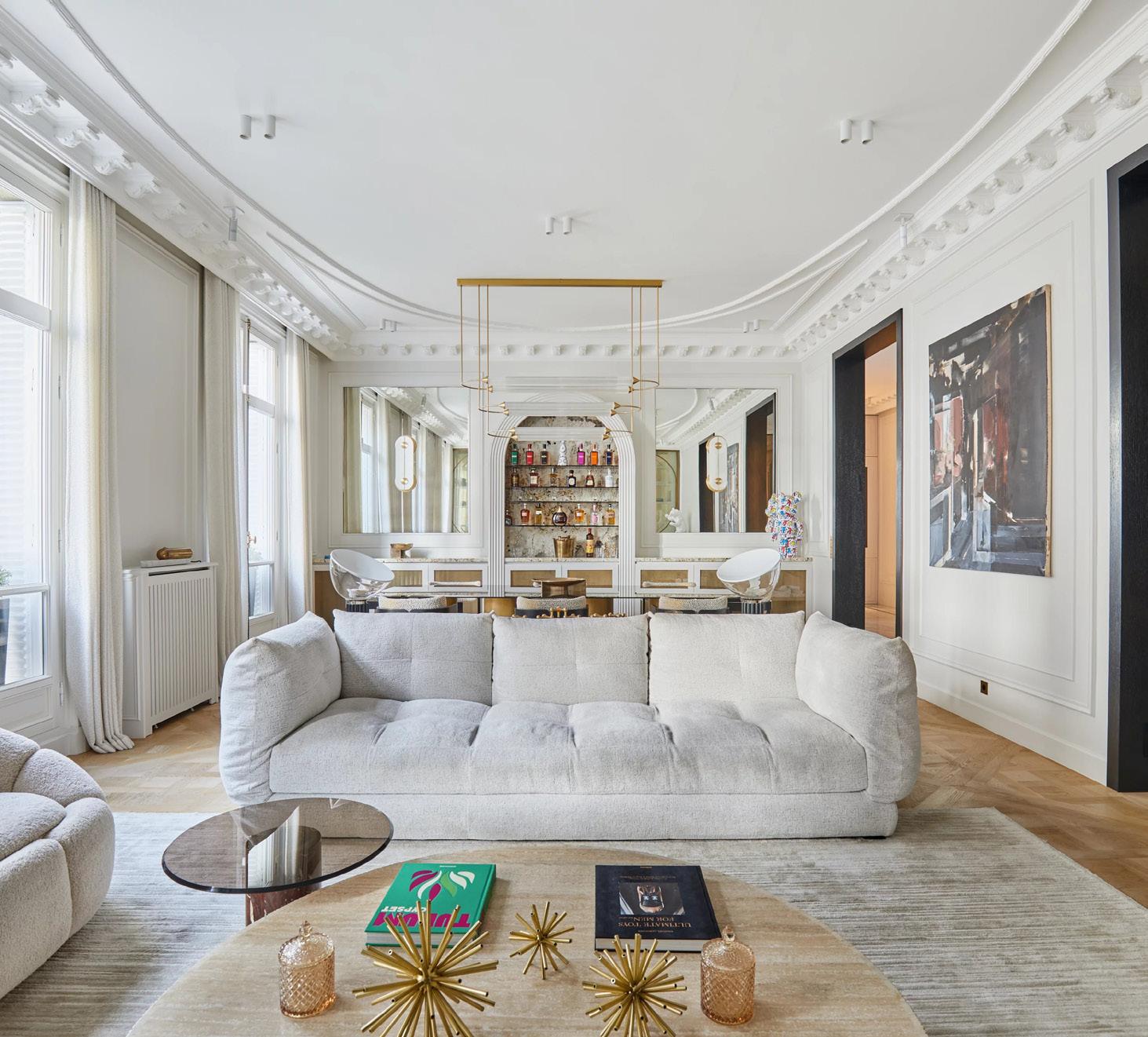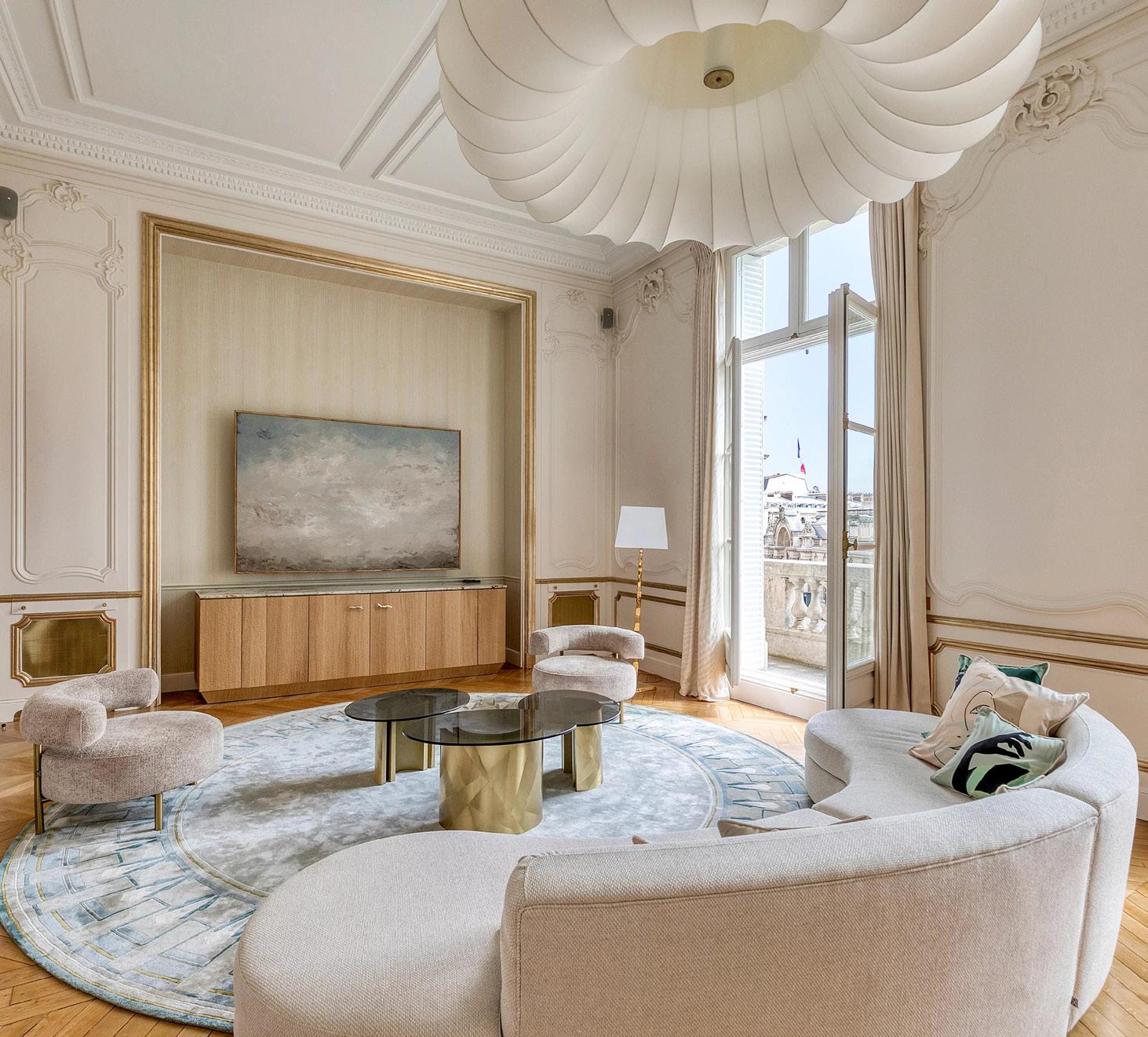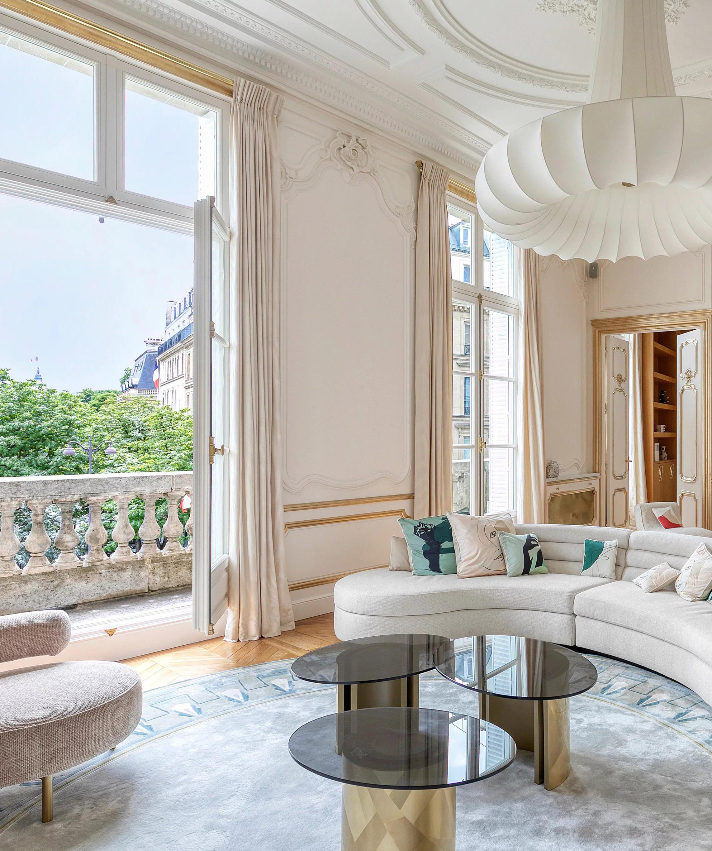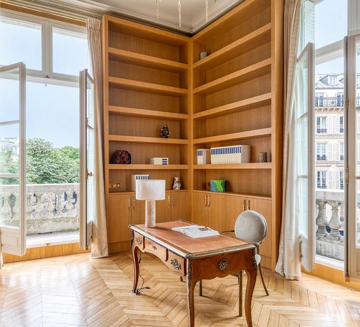 Located in the Hôtel d’Orgemont, a grand 18th-century private mansion in the heart of Paris, this 3,444 sq ft (320 sq m) apartment overlooks Place Beauvau, the Élysée Palace, and Avenue de Marigny. Renovated by the Rinck studio, the residence includes elegant living and dining rooms, a study, three bedrooms (including two suites), a wraparound balcony, as well as a studio apartment for staff. Price upon request