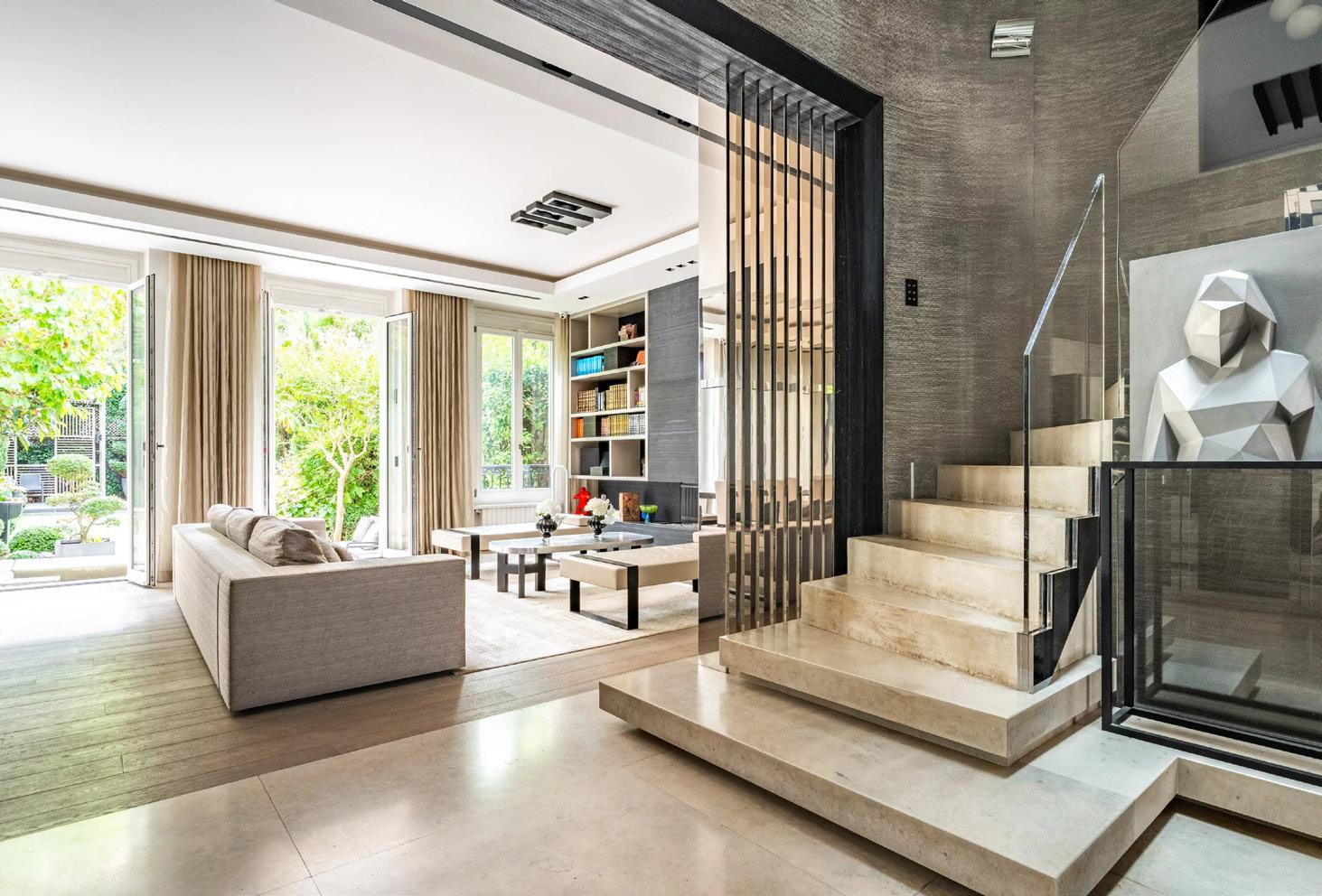 This 4,951 sq ft (460 sq m) private mansion benefiting from a south-facing garden is just a stone’s throw from the Bois de Boulogne. There are five bedrooms (including three suites), a reception room and kitchen opening to a terrace and garden, a study, recreation room, and two lock-up garages.