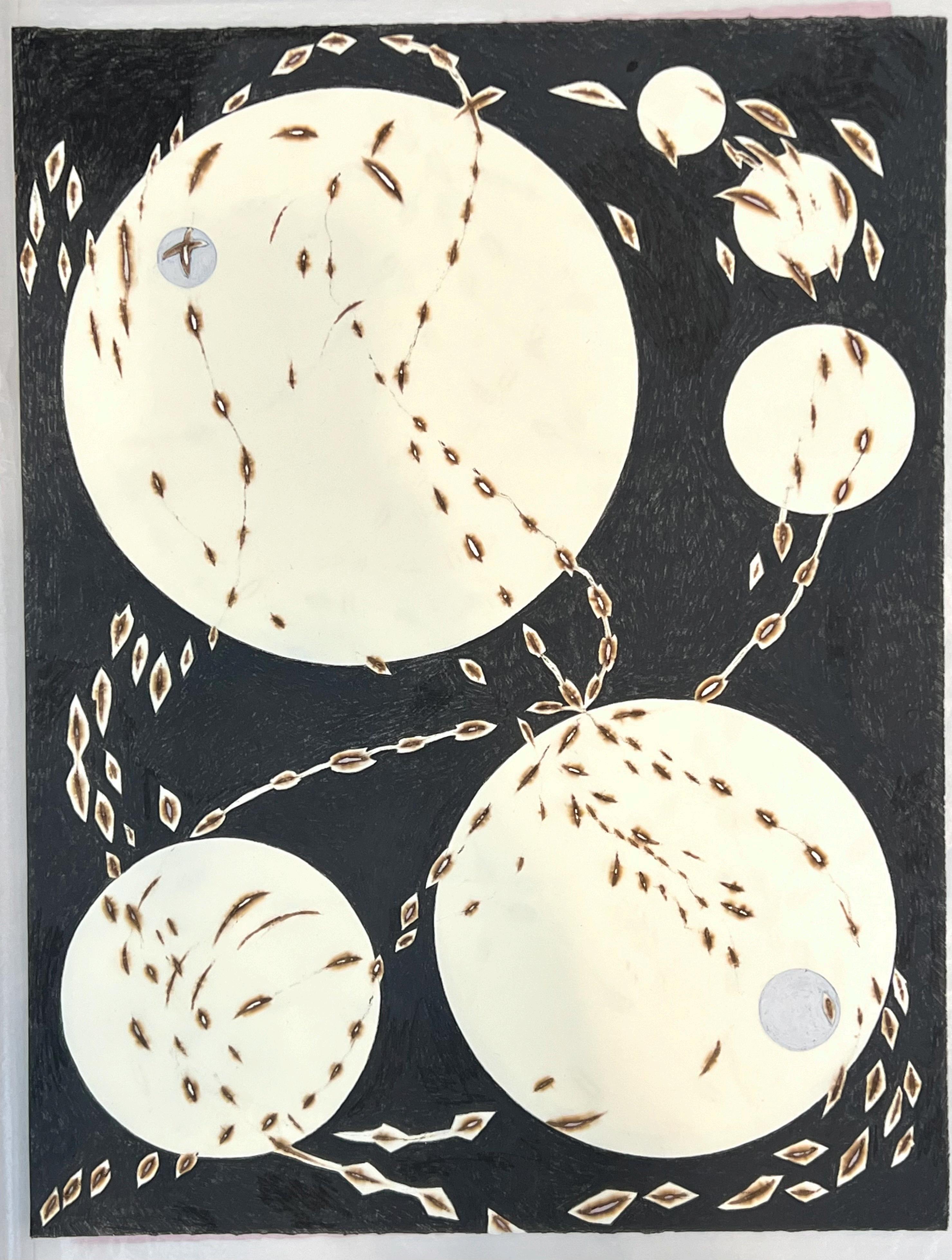 I explore image-making through physical interaction and transformation. Heat: a force of nature changes the paper and canvas.