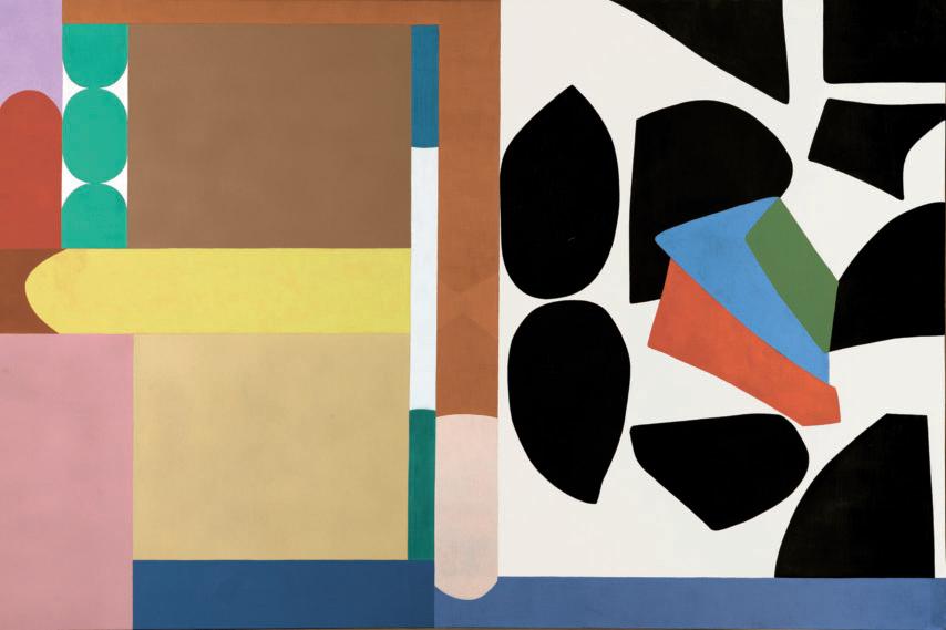 in leicht moduliertem Blau, die wie der sichtbare Teil von zwei bündig abschliessenden Ovalen wirken. In vermeintlichem Widerspruch zur linken Hälfe scheint die rechte weniger frontal ausgerichtet zu sein, als würden die Formen in drei gestafelten Ebenen schweben: im Vordergrund die drei farbigen Formen, dahinter die schwarzen auf einem weissen Hintergrund. Davon kann jedoch keine Rede sein, da das Weiss kein lebloser Hintergrund ist, sondern aktiv an der Komposition mitwirkt, sodass es selbst zur Form wird, die ein komplexes Spiel mit den Bildrändern unterhält. So bahnt sich das Weiss zwischen den schwarzen Elementen an mehreren Stellen seinen Weg und drängt diese gelegentlich bis an die materielle Grenze der Leinwand, wie um diese zu annullieren und zu überwinden. Das solide Weiss dringt bis in die kleinsten Räume zwischen den Formen, und es entsteht der Eindruck, diese häten sich gerade erst voneinander gelöst: wie etwa die spitz zulaufende schwarze ovale Form, die entlang des ockerfarbenen vertikalen Streifens in der Bildmite verläuf und nun minimal von diesem getrennt ist. Ihr Umgang mit den Zwischenräumen, die Spannung zwischen den Elementen, bestimmten, so Shirley Jafe, die Grundkomposition ihrer Werke – das sei ihr persönliches Bekenntnis zum Feminismus: «Ich habe mich gefragt, ob meine Malerei, meine Art, über die Beziehung zwischen den Formen und dem Ganzen nachzudenken, typisch weiblich ist.»4 Abgesehen davon, dass ich mich aufgrund meiner täglichen Begegnung mit Shirley Jafes Gemälde schon seit Langem mit dem Gedanken trage, ihr erneut eine Ausstellung im Musée Matisse zu widmen (die letzte fand 1995 unter der Ägide von Xavier Girard stat), war paradoxerweise die Reproduktion eines Bildes auf dem Instagram-Account ihrer Galerie der tatsächliche Auslöser für den Kontakt zu Nathalie Obadia und Maimiti Cazalis. Durch sie trat ich mit Frédéric Paul in Verbindung, der ein solches Projekt schon seit Jahren für das Centre Pompidou ins Auge gefasst hate. Die so trügerische Reproduktion hate uns zusammengeführt, das war wohl ihre Bestimmung. Nun soll endlich die viel zu seltene Begegnung mit der Malerei von Shirley Jafe statfnden. Ich habe mir gewünscht, dass die Station im Musée Matisse ganz und gar in den Händen von Frédéric Paul liegt, der Shirley und ihr Werk schon lange Zeit begleitet, während ich sie im Wesentlichen einzig über das bereits erwähnte Bild, kannte. Das Besondere am Ausstellungsort in Nizza, nach denen in Paris und Basel, ist, dass er Shirley Jafe ‹bei Matisse› willkommen heissen wird. Xavier Girard und Yves Michaud haten uns schon zu ihrer Zeit vor einem übereilten und oberfächlichen Vergleich zwischen