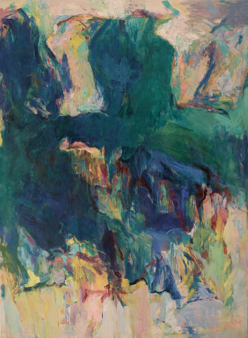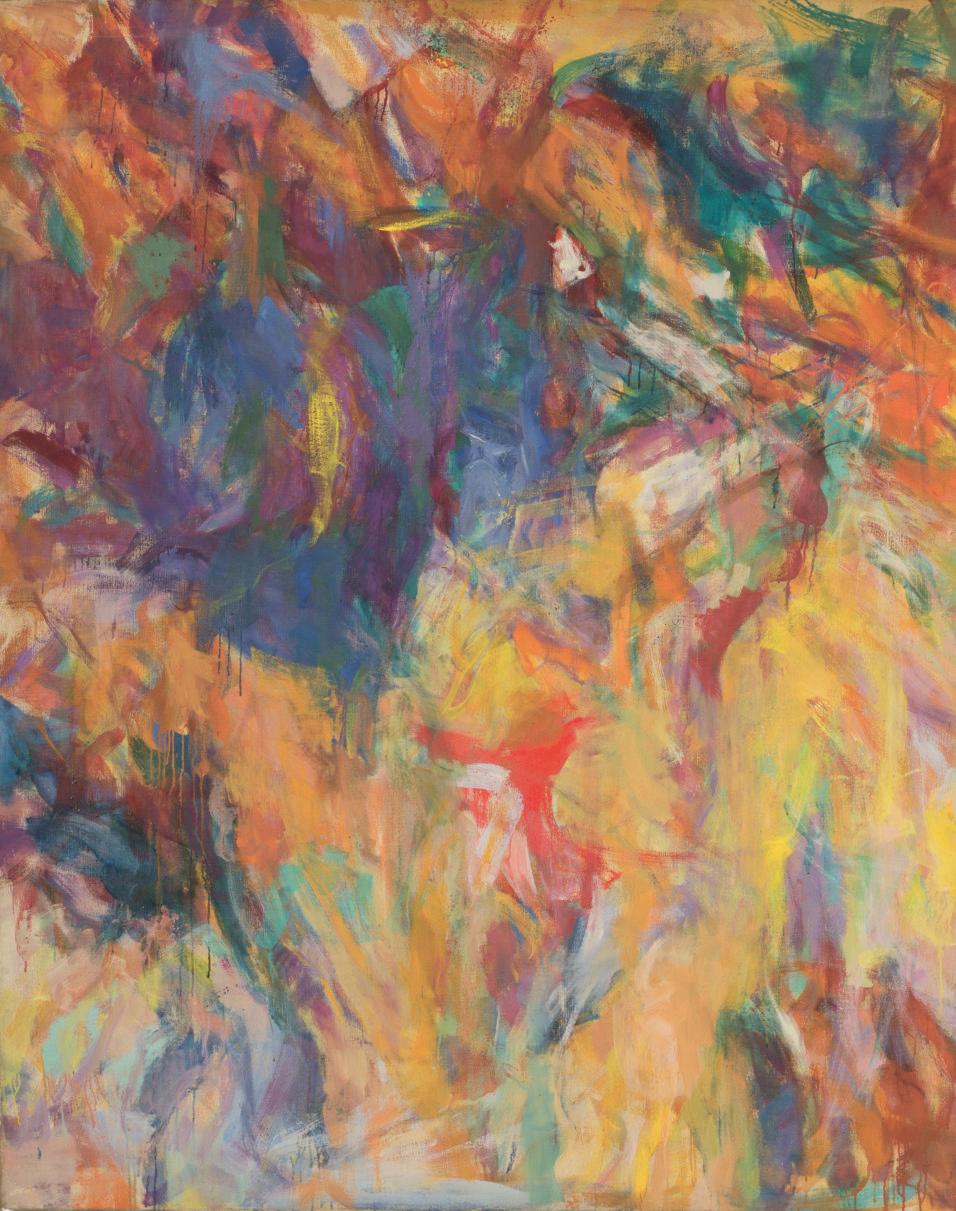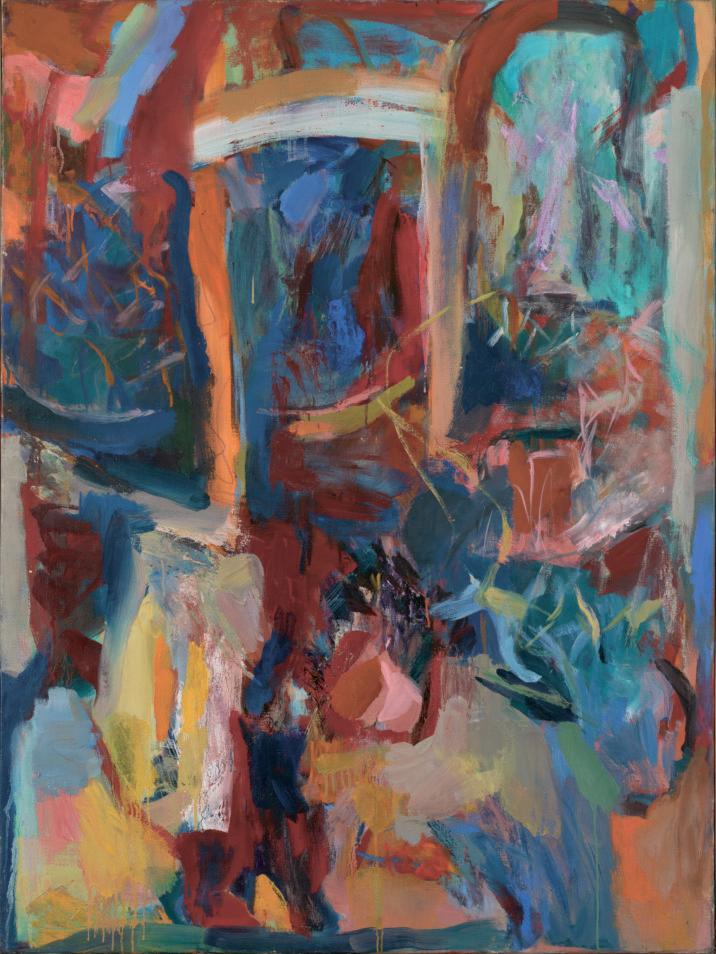 A large diptych acquired in 1996 and painted the year before, All Together, can be read as an ironic counterstatement of the way the artist conceived her approach—an anti-manifesto, therefore, since for her painting was never an atempt to keep the elements of a composition together, a search for an ideal stability. Jafe never idealized. Nor did she atempt to charm. She was not drawn to an abstract harmony foating free of the real. Profoundly urban, she slowly produced paintings that pulsate.
