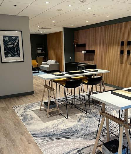 As well as operating as a watch showroom, 53° North becomes a sleek dining room on match days. On the walls, you’ll nd artwork inspired by Everton’s history, Swiss horology and Liverpool’s seafaring heritage.