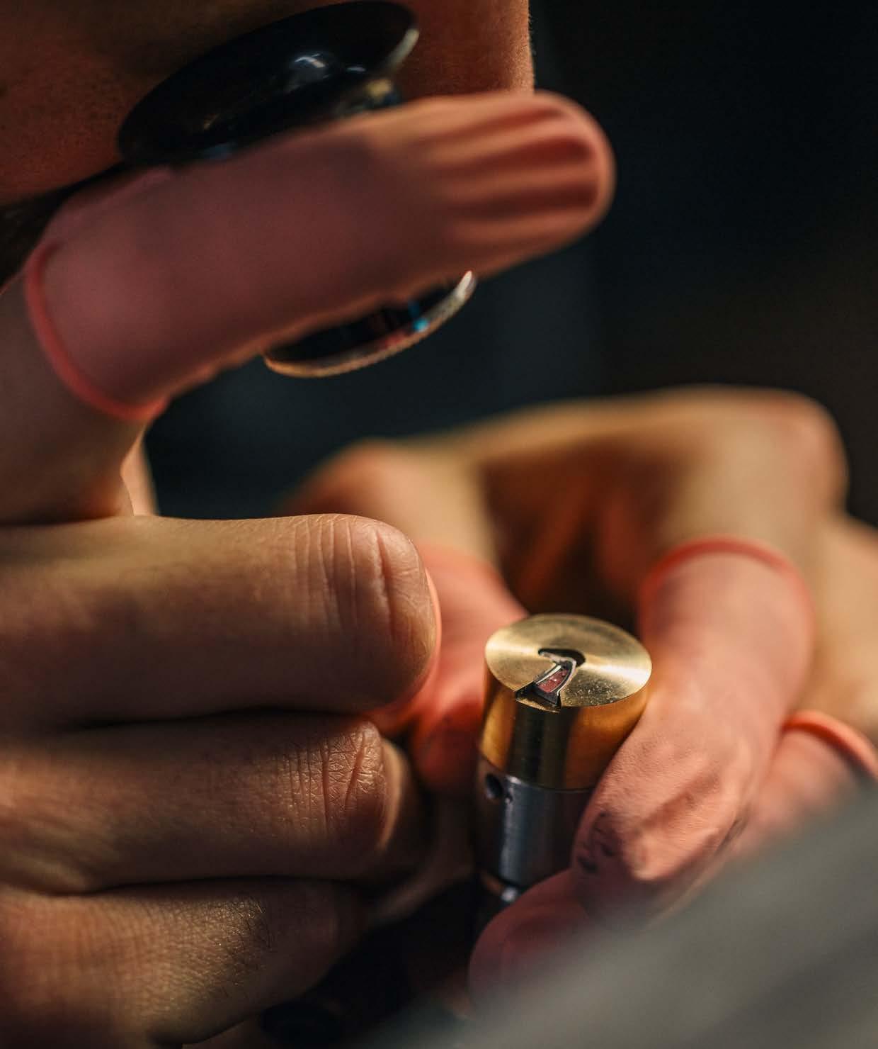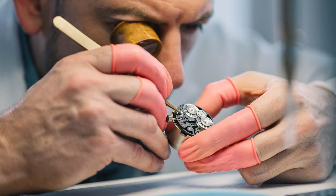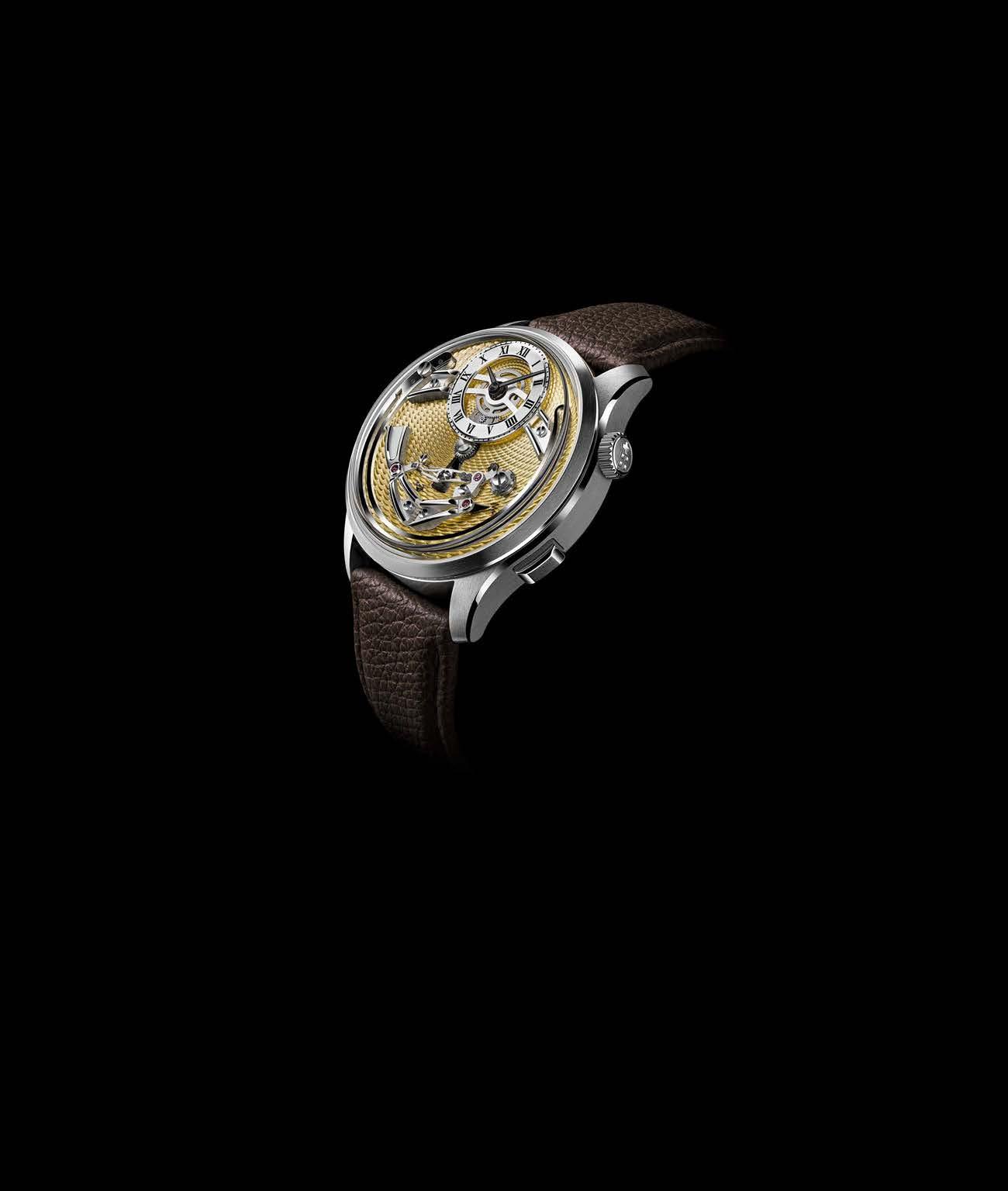 “Johannes took on the single-pusher project of esteemed, 80-year-old watchmaker Jean Fillon, who’d been unable to nish it. He inverted the single-pusher element of it, so you could see what was happening when you pressed the pusher to activate its functions. The watch that held this movement, the C900 Harrison Single Pusher Chronograph, is very much in-demand on the second-hand market.”