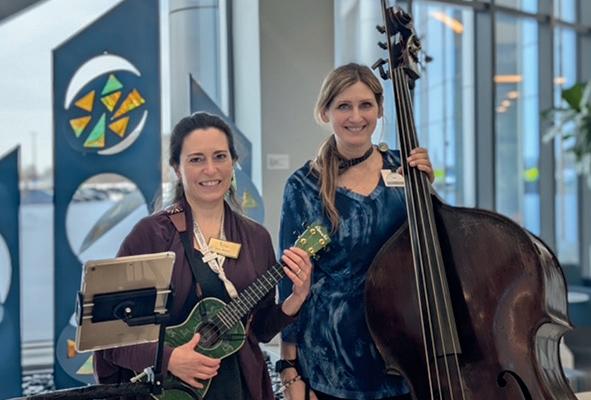 Drs. Straus and Miller typically visit McLaren Greater Lansing two to three times a week and play mainly at a patient’s bedside, but you can also see them performing in the lobbies of the hospital and Karmanos Cancer Institute for staff and visitors, along with