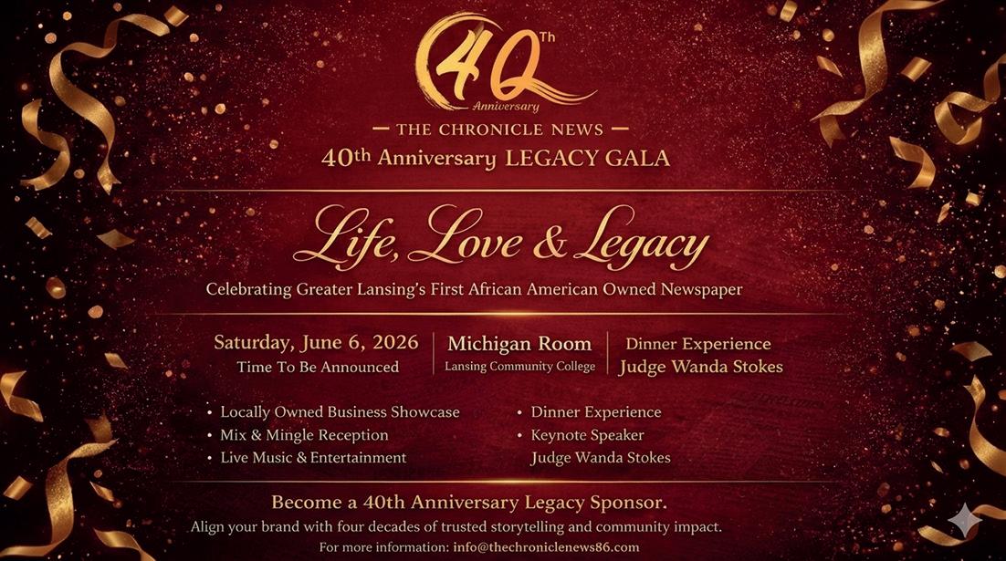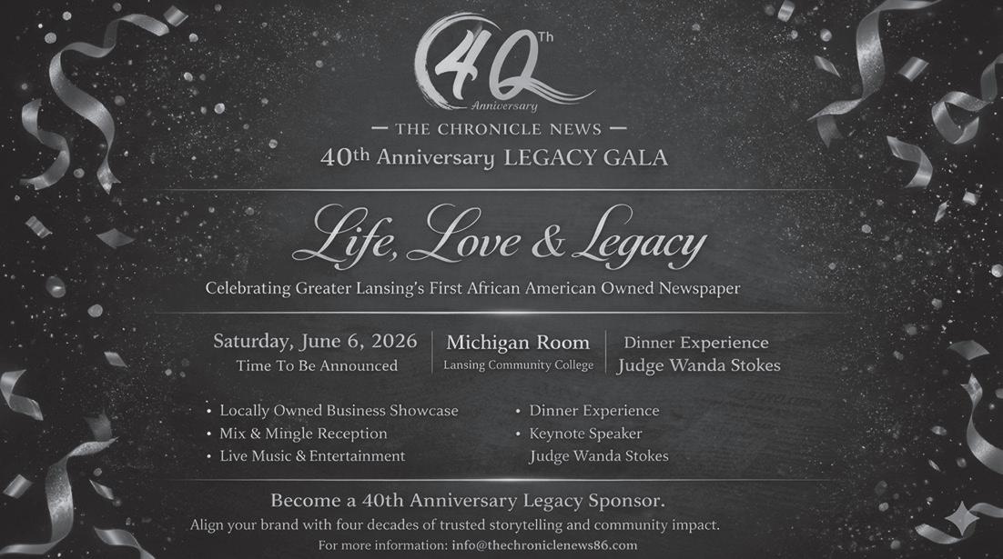 For four decades, The Chronicle News has amplified voices, honored culture, and preserved the stories that shape our community. On Saturday, June 6, 2026, we invite you to celebrate this milestone at the Michigan Room at Lansing Community College.