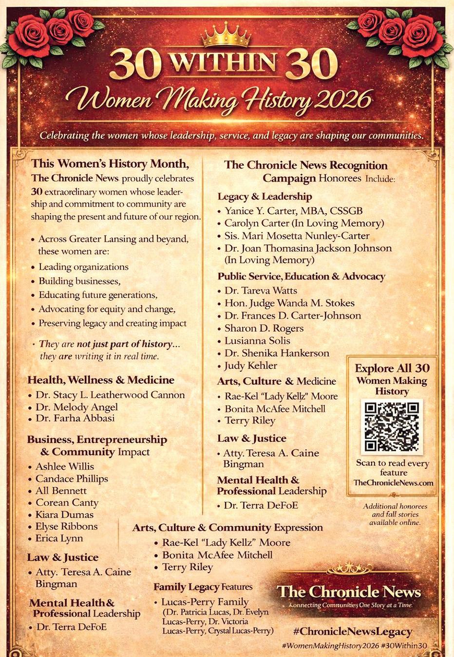This Women’s History Month, The Chronicle News proudly celebrates 30 extraordinary women whose leadership, courage, and commitment to community are shaping the present and inspiring the future.
