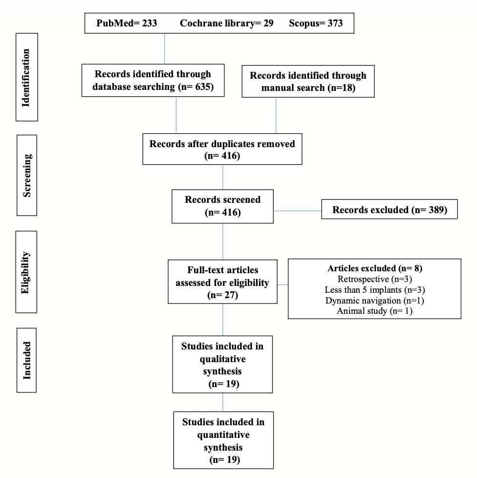 Nineteen studies were eligible. The overall implant deviation using -