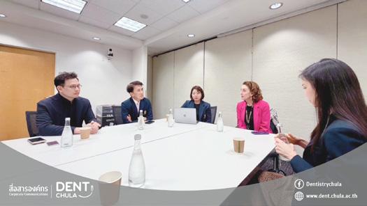Faculty of Dentistry, Chulalongkorn University welcomed a delegation from the Institute of Science Tokyo, Japan, led by Prof. Kenji FUEKI (Dean), accompanied by Prof. Takashi ONO, Prof. Keiji MORIYAMA, and Ms. Hitomi IIZAWA. The visit aimed to discuss academic collaboration, the implementation of a joint degree program, and the signing of a Memorandum of Understanding (MoU). The delegation also joined exchange activities with faculty members and students, including a Q&A session and one-onone consultations on research, to