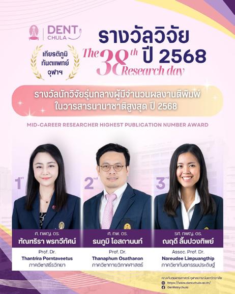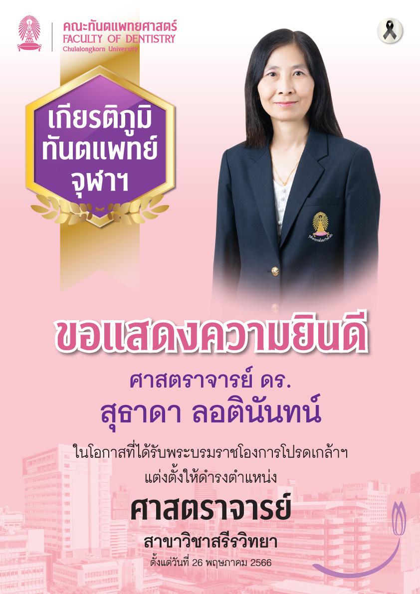 The Faculty of Dentistry, Chulalongkorn University would like to extend our heartfelt congratulations to Prof. Dr. Sutada Lotinun, on her royal appointment as Physiology.
