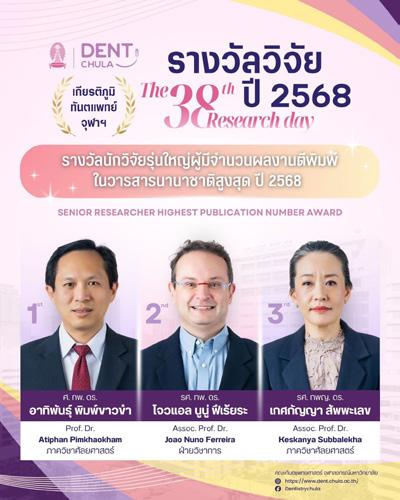This year, the Faculty of Dentistry, Chulalongkorn University, had 17 members of its academic staff who received national and international awards, as follows: