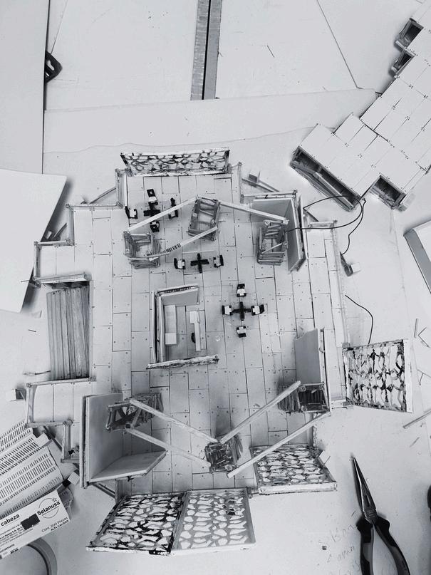 El objetivo principal de este proyecto es la creación de una estructura efímera que se inserte de manera fluida en un espacio ya existente, generando un entorno multifuncional donde se pueda disfrutar de la tranquilidad.