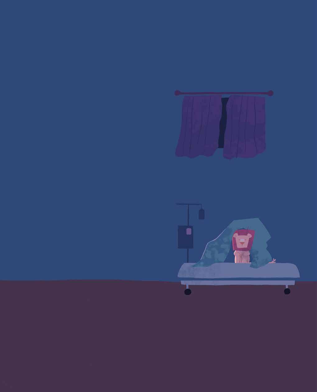 「別擔心,只要待在醫院休息 幾週,你就會變回原來那隻 活力滿滿的小獅子啦!」