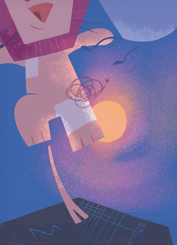 「叮叮噹!」彈著吉他。