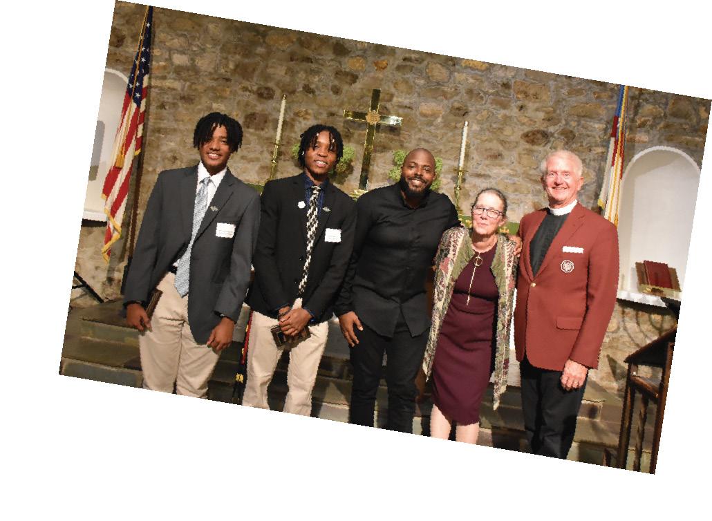 Board Chair Matt Burns (right) with Head of School The Rev. Ned Sherrill and Luis Triveno ’23 (Johns Hopkins University ‘27).
