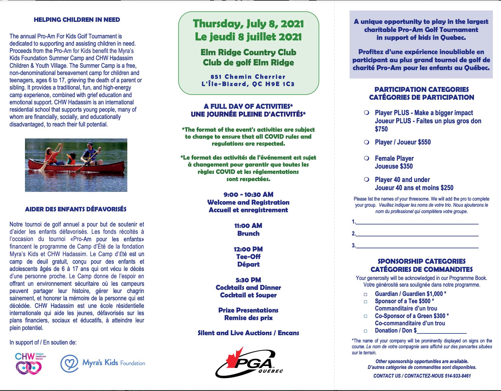 Monday, July 6, 2026 at Elm R idge Countr y Club Register Today / Inscrivez-Vous Aujourd’hui: (514) 933-8461 / info - events@chw.ca